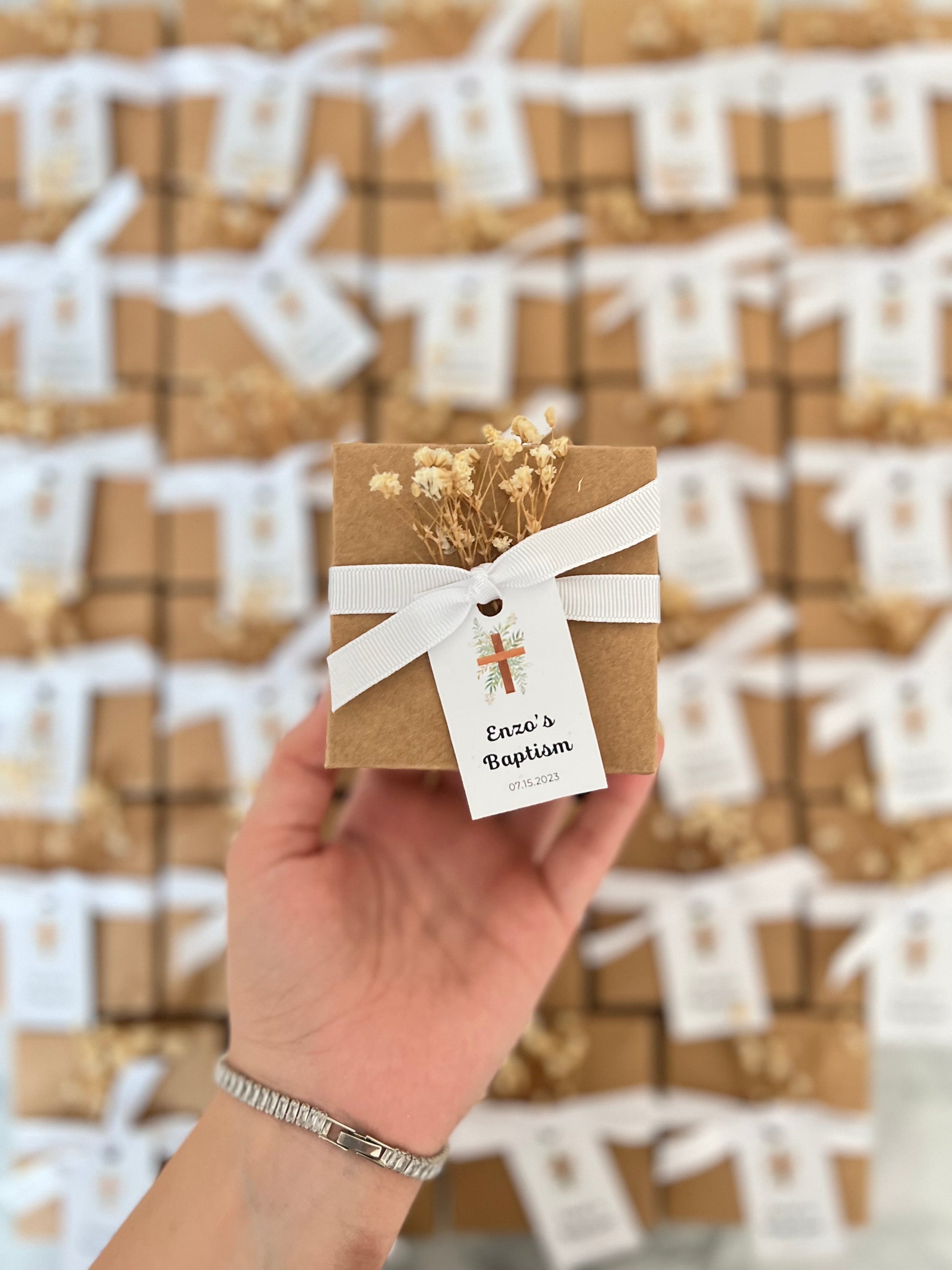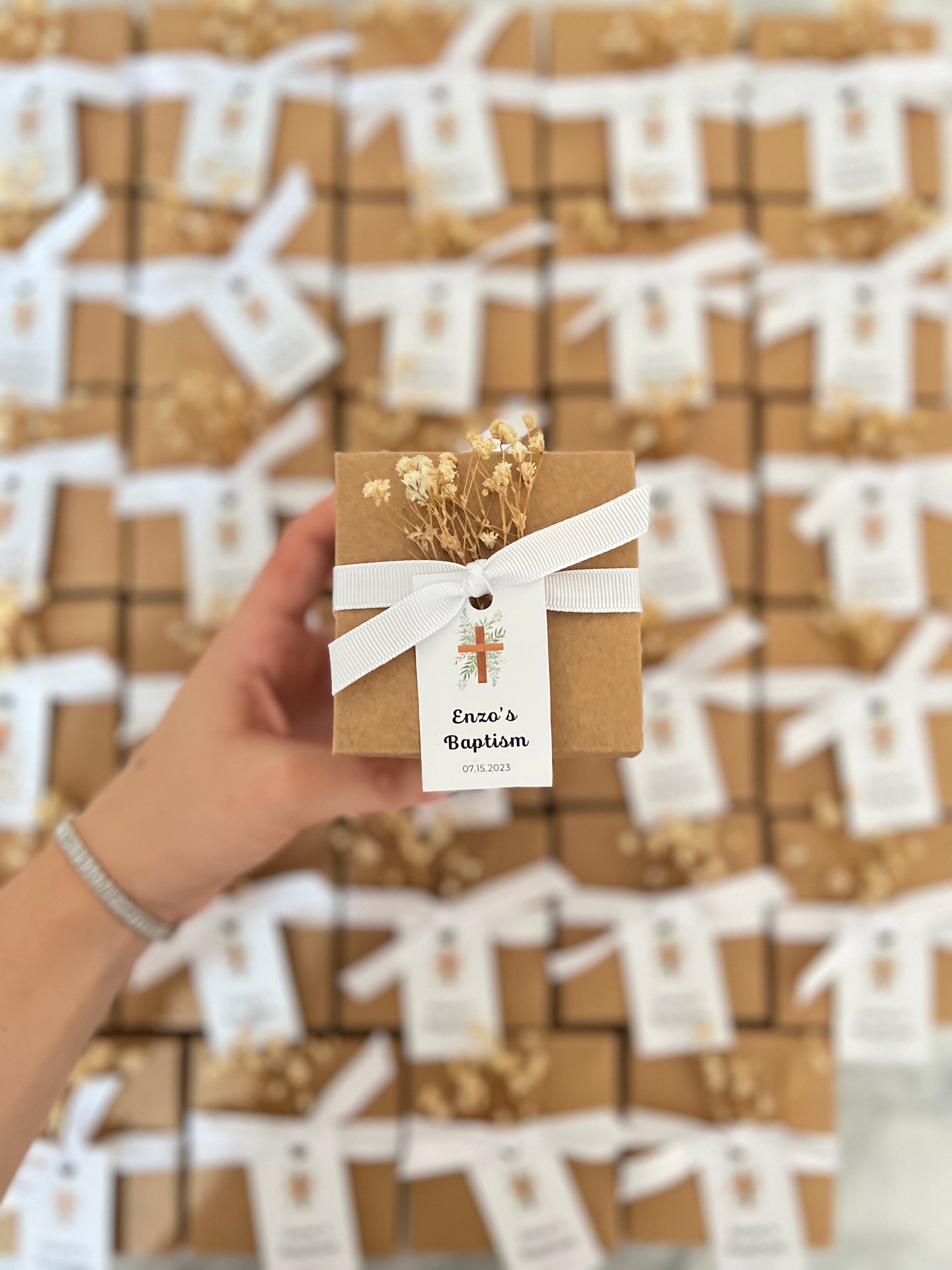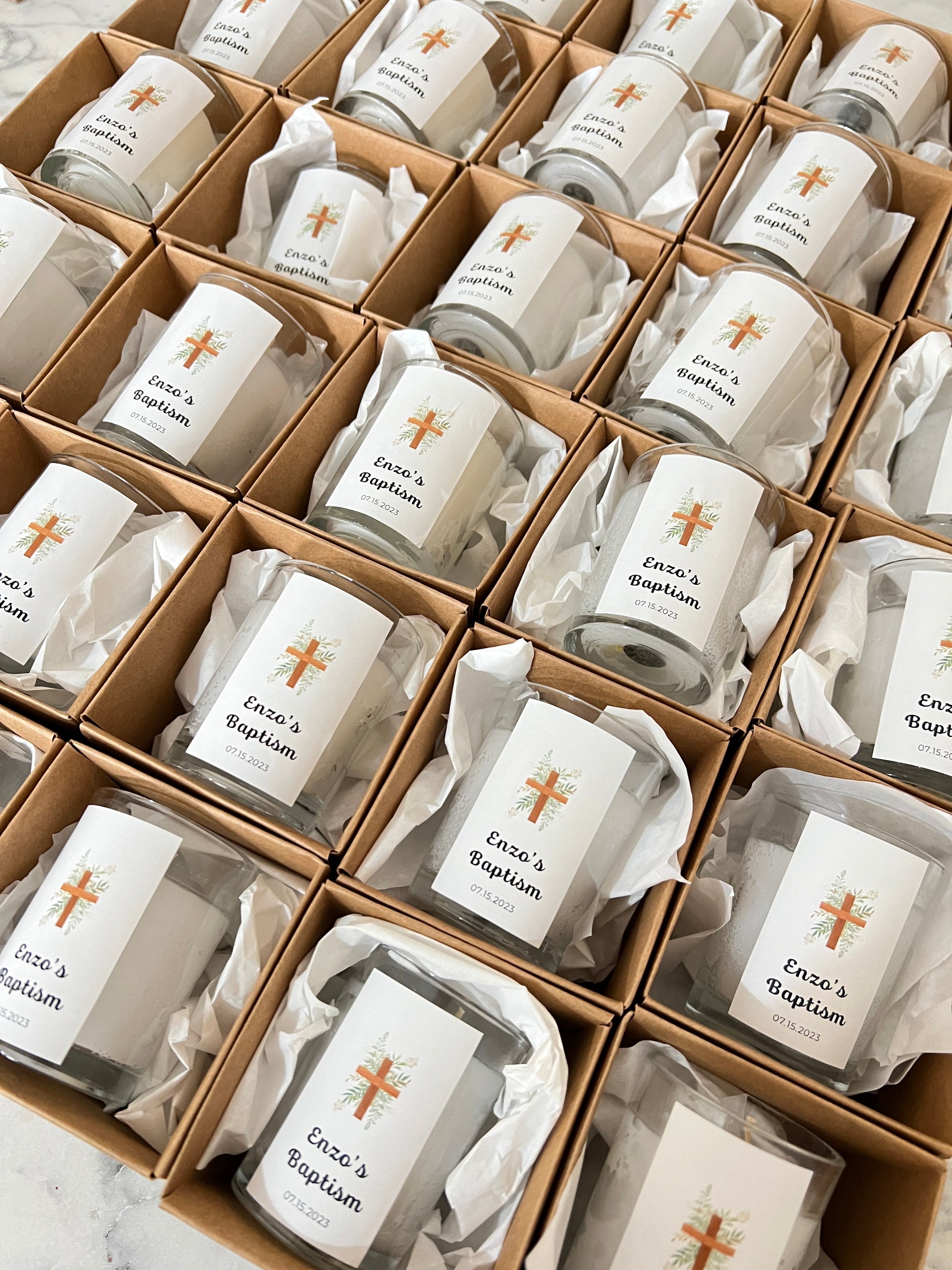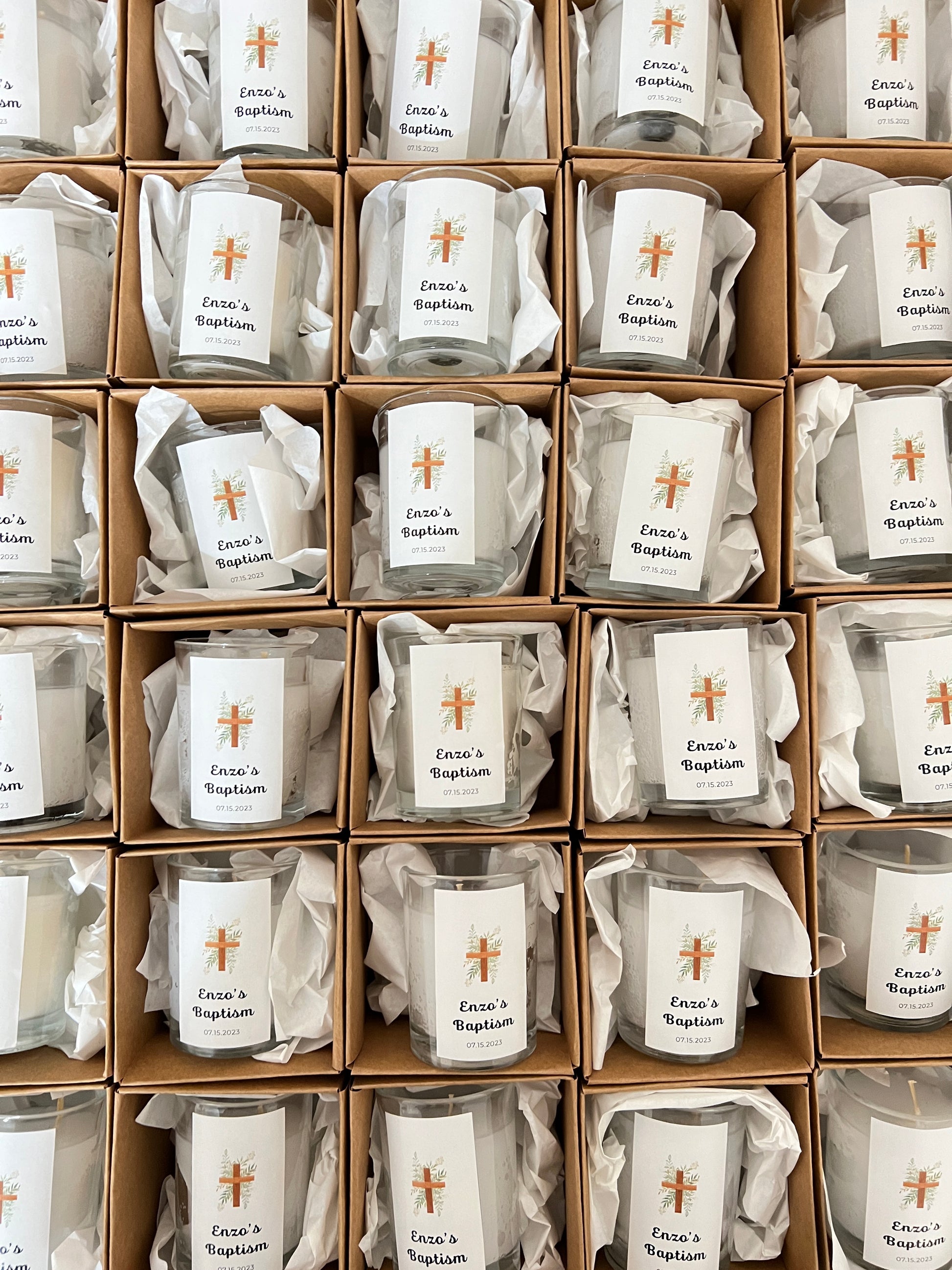 Celebrate the special occasion of a baptism with our unique and personalized souvenirs for guests. Our Baptism Party Glass Candle Favors are the perfect keepsake for your loved ones, as they come in a beautiful box and are customized with the name of the child, the date of the baptism, and a special message. These favors are also suitable for First Communions and Mi Bautizo celebrations. Our high-quality materials and attention to detail ensure that our baptism souvenirs make a lasting impression on your guests. Make your event truly memorable by choosing from our selection of designs for both girls and boys. In addition, these souvenirs are practical and make great baptism gift ideas. Don't miss out on the opportunity to make your event extra special with our Baptism Party Glass Candle Favors.