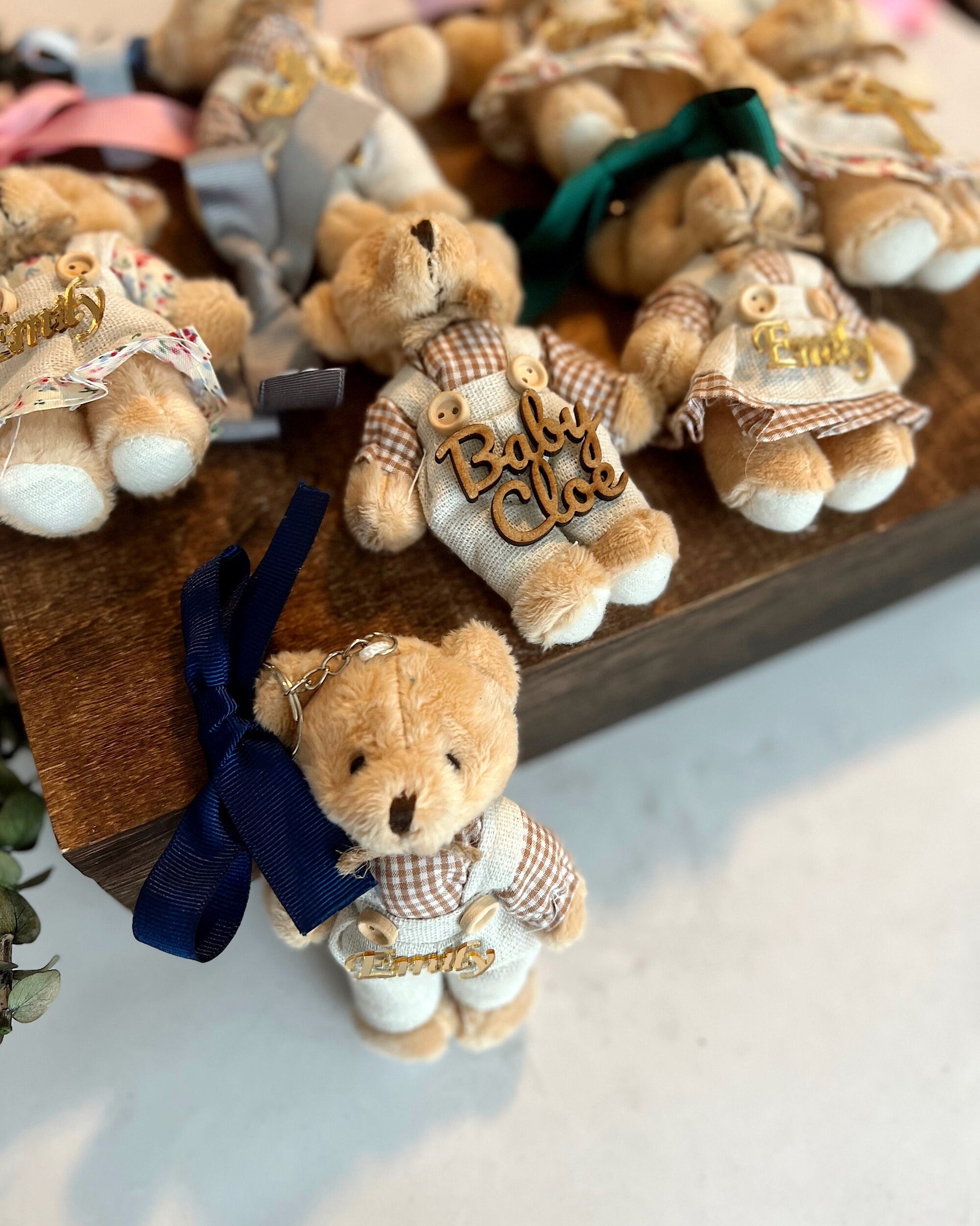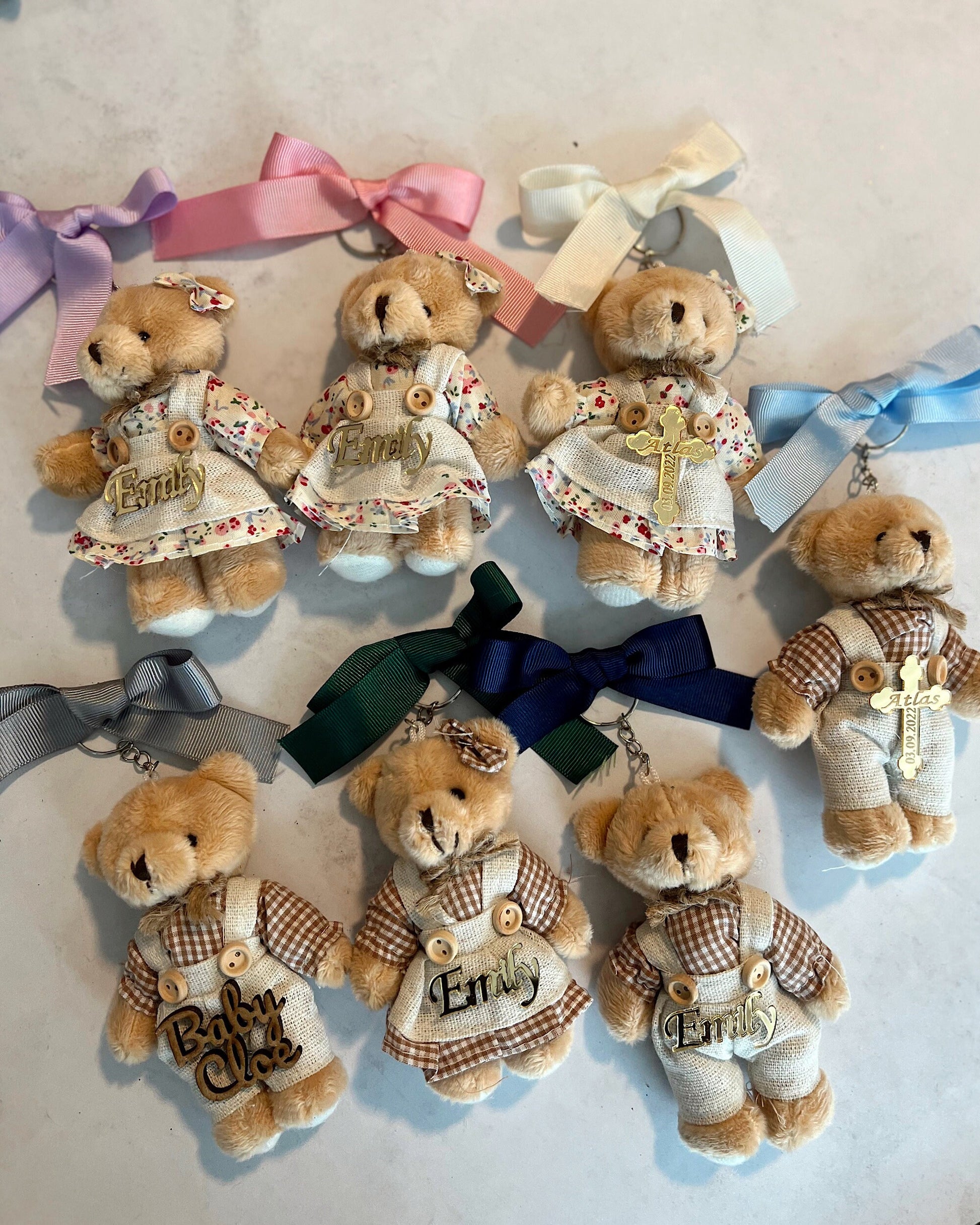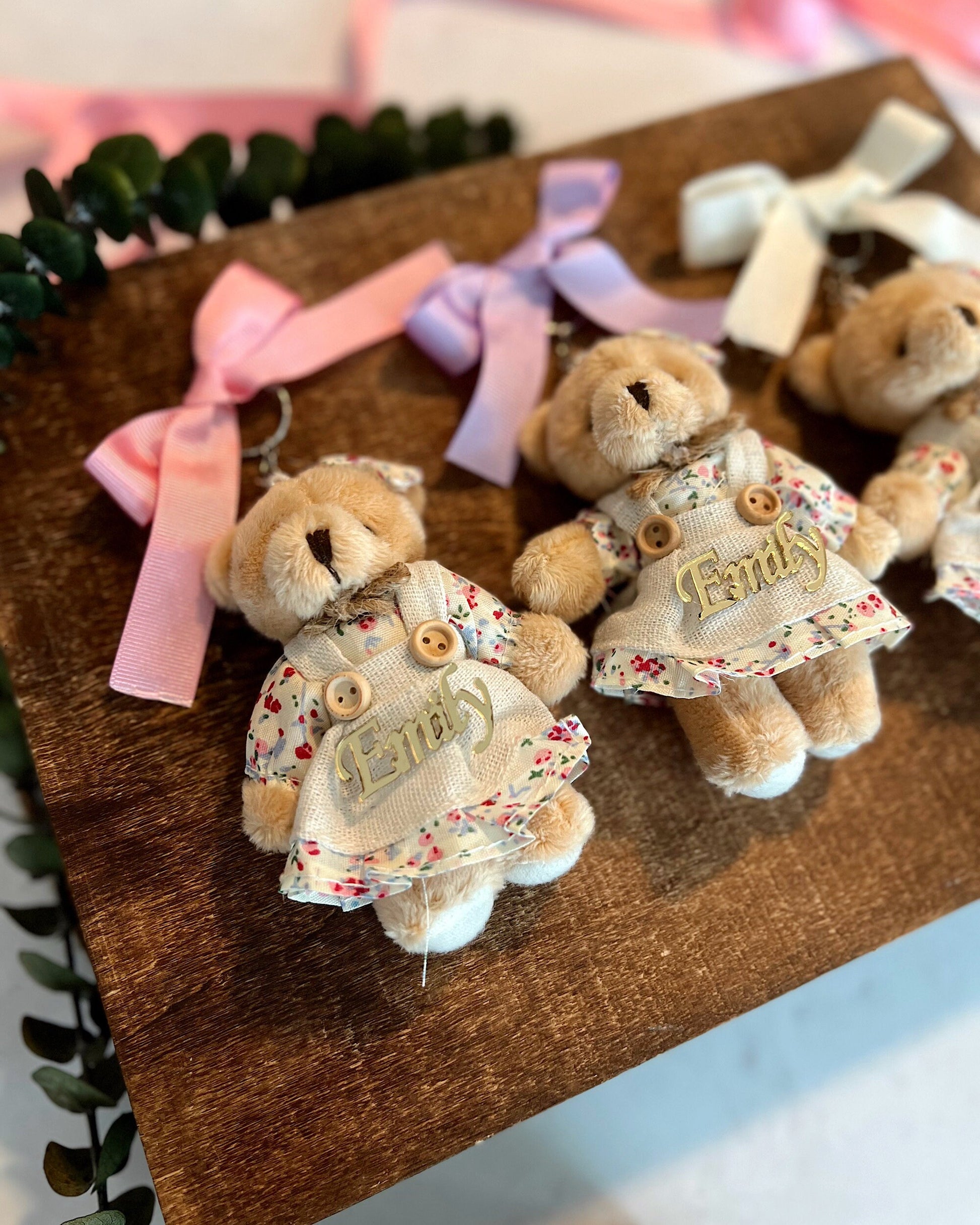 Personalized plush furry teddy bear keychains are a great favors option for your parties such as baby showers, first birthdays and baptism. They can also be a memorable keepsake for guests to take home.