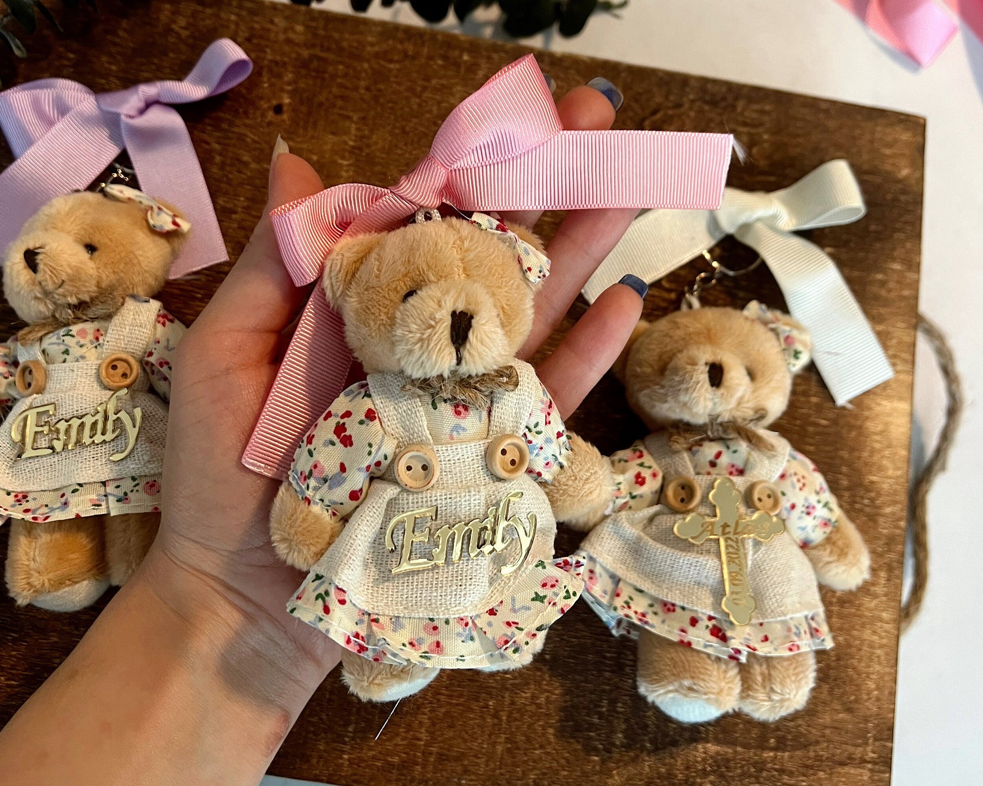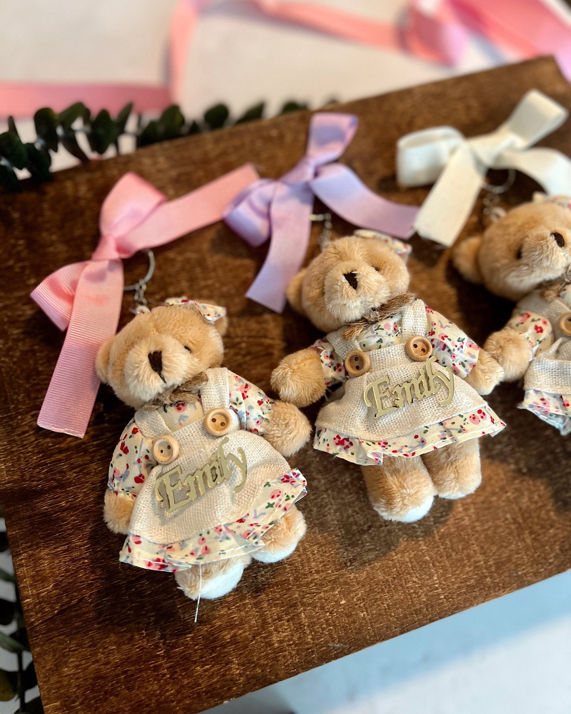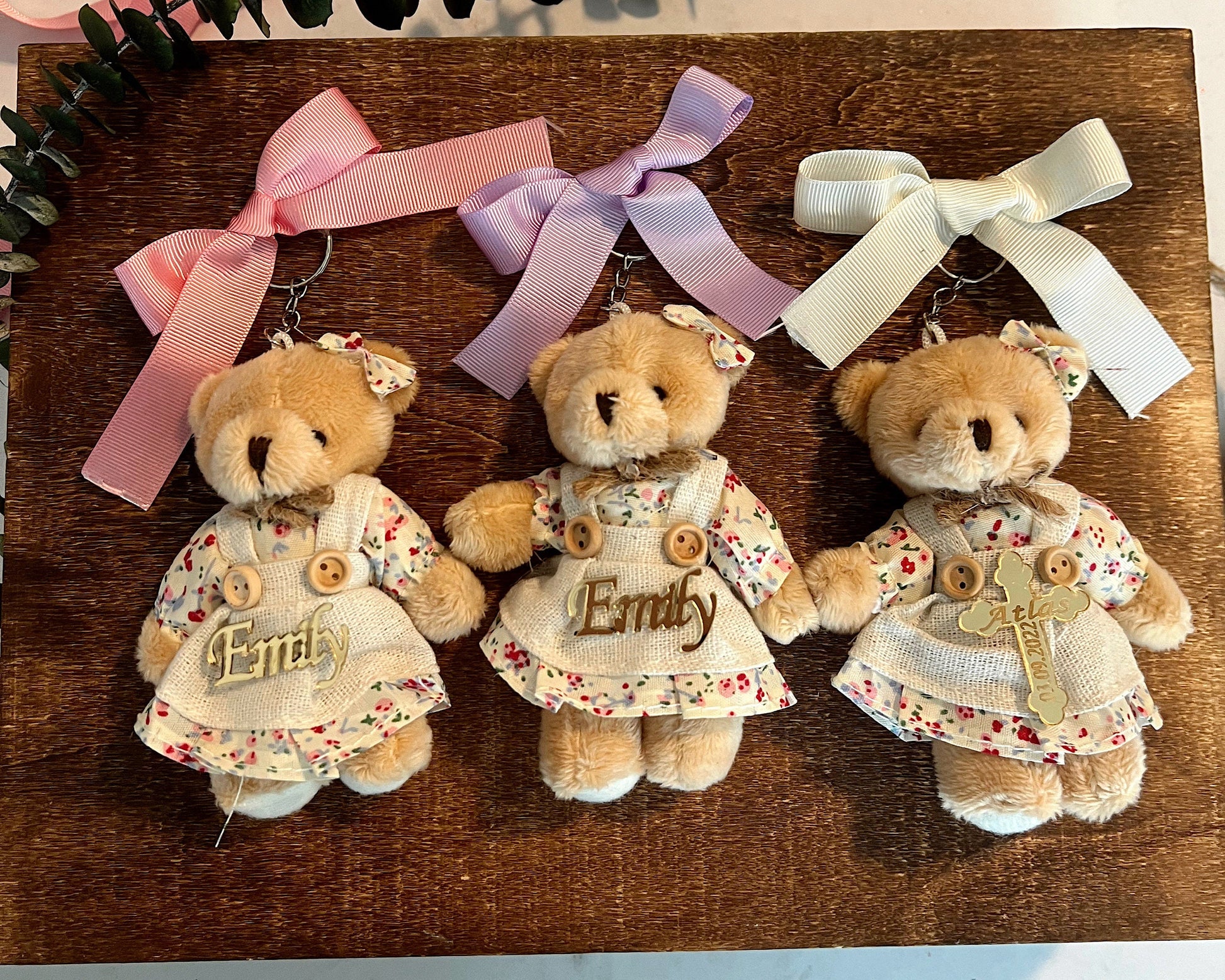 Personalized plush furry teddy bear keychains are a great favors option for your parties such as baby showers, first birthdays and baptism. They can also be a memorable keepsake for guests to take home.