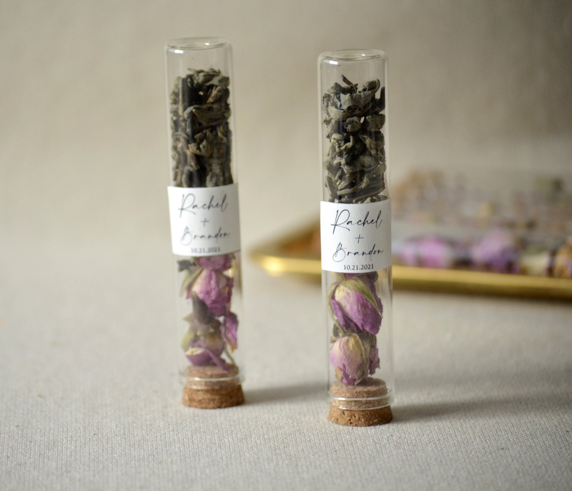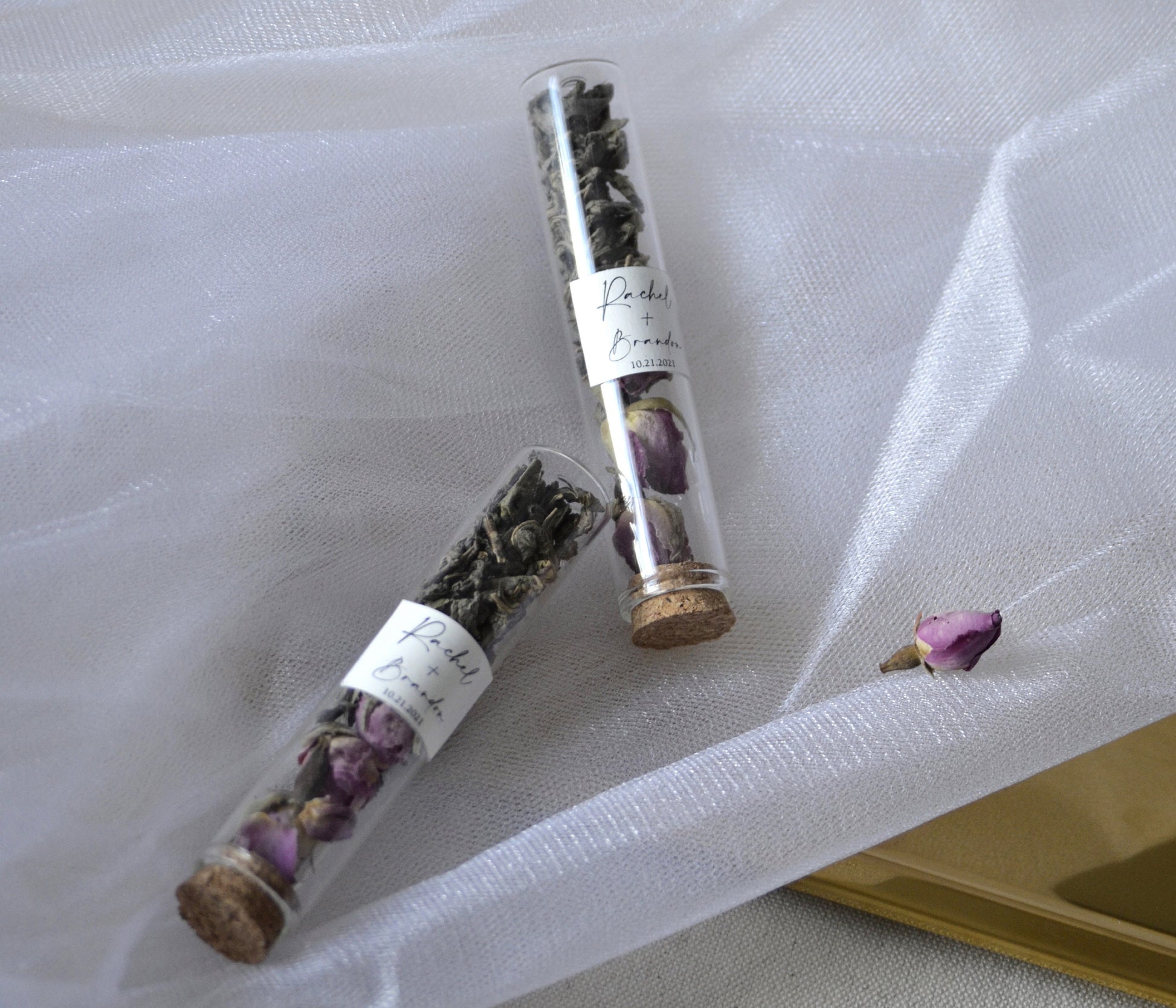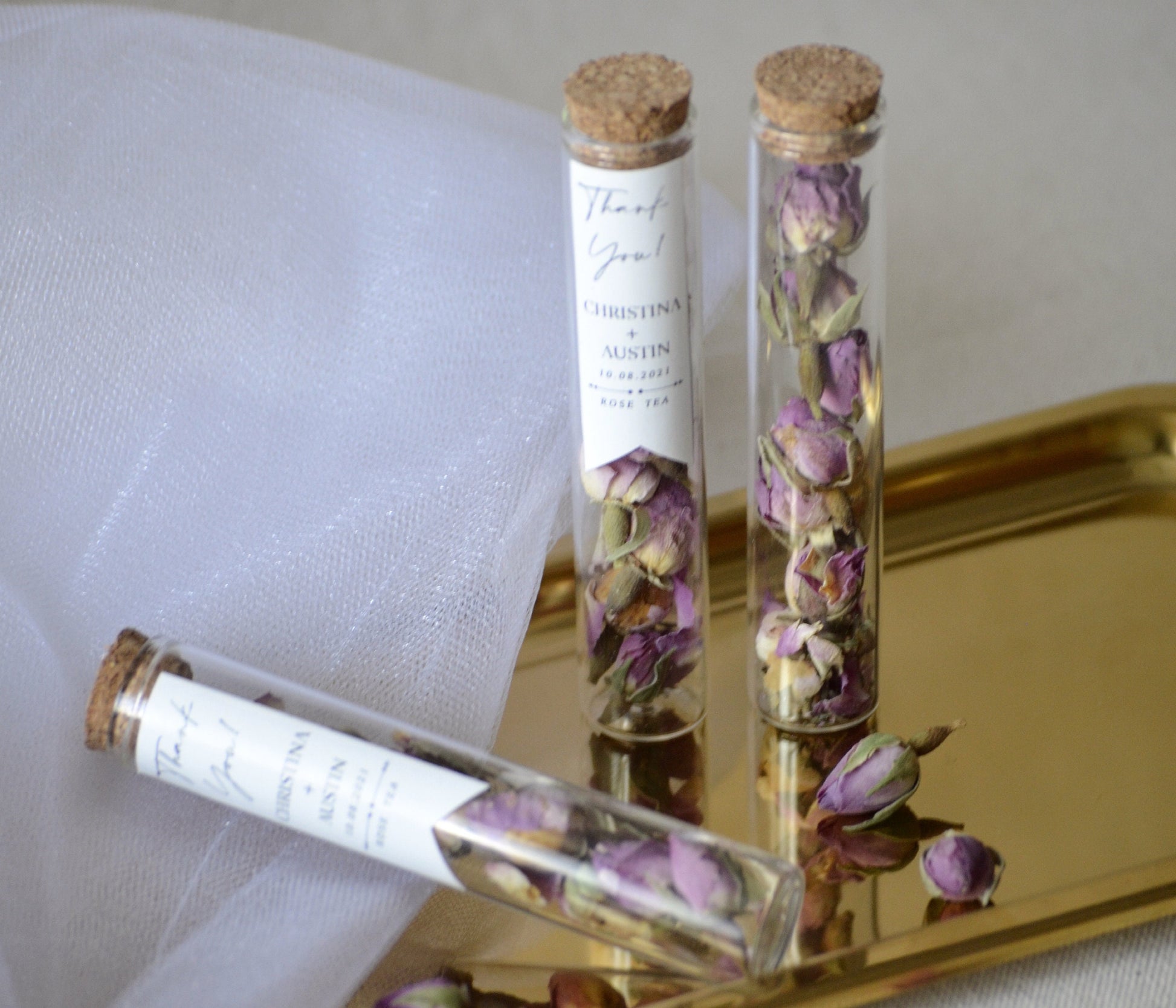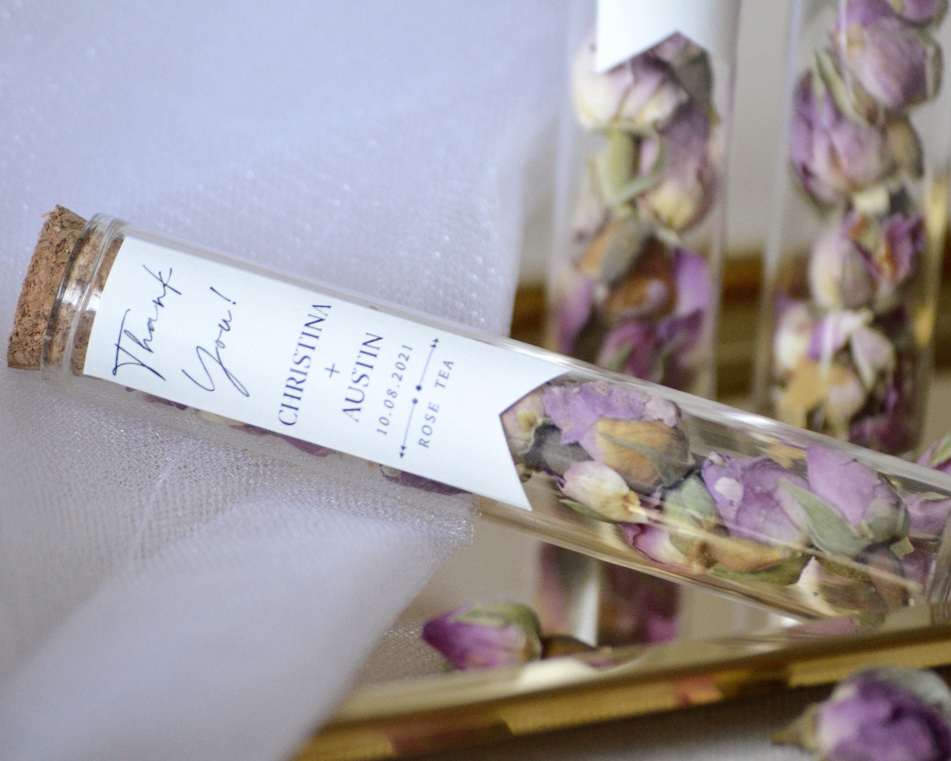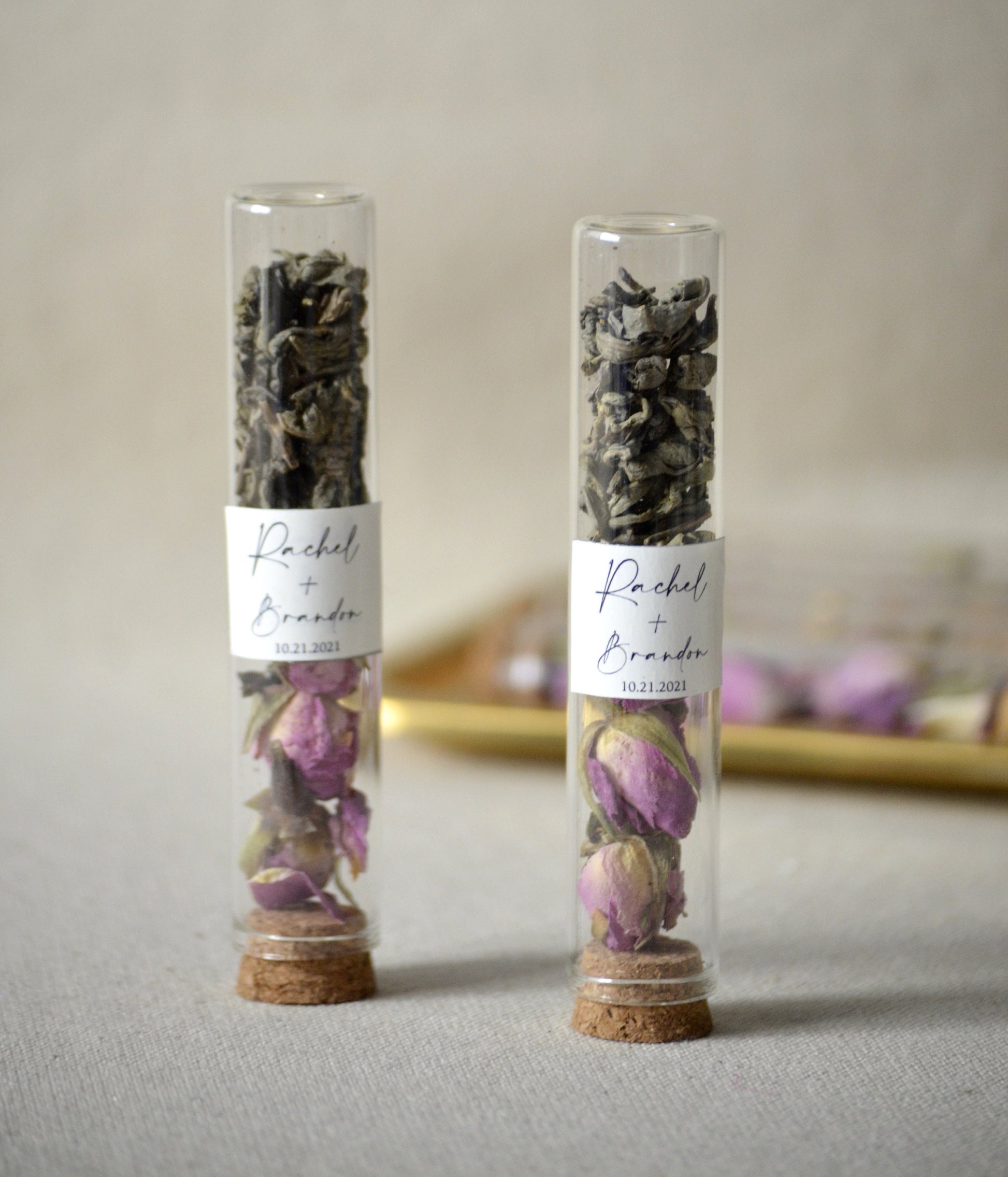 Crafted with the finest organic tea leaves, these customizable glass jars are perfect for presenting thank you gift your guests as an elegant rustic wedding favor, bridal shower brunch favor, tea party favor, bachelorette party gift, engagement party favor, bridesmaid gift.