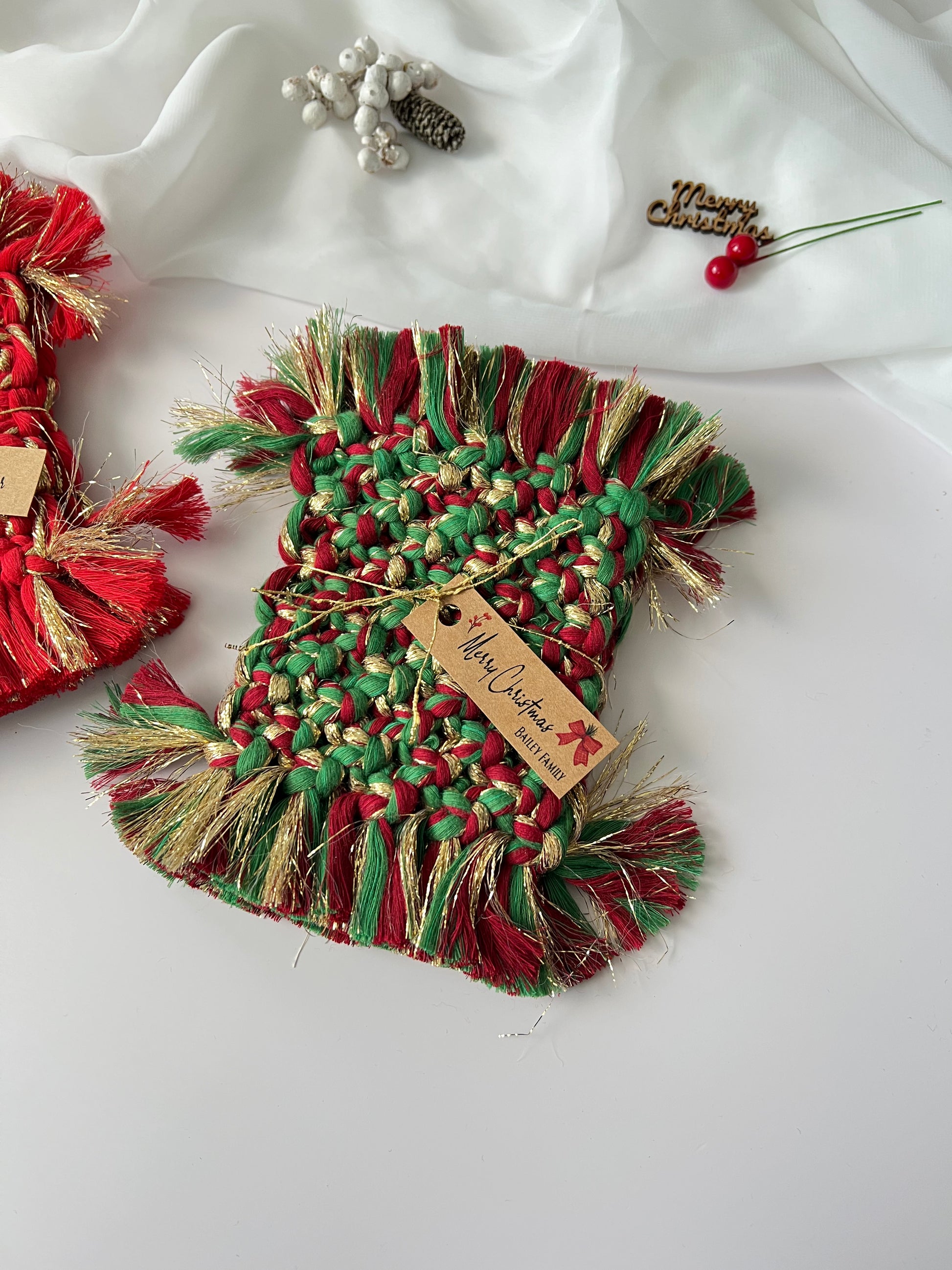 Christmas Macrame Coaster Keychain Gifts 2 pcs - Festive Holiday and New Year's Decor