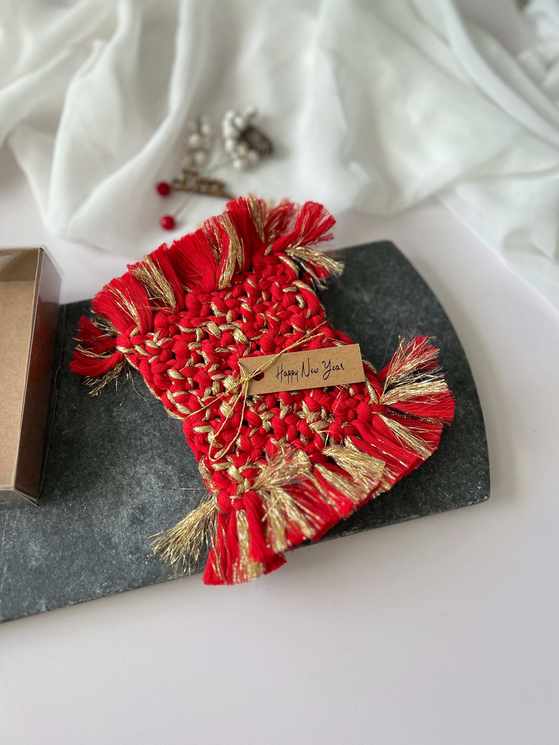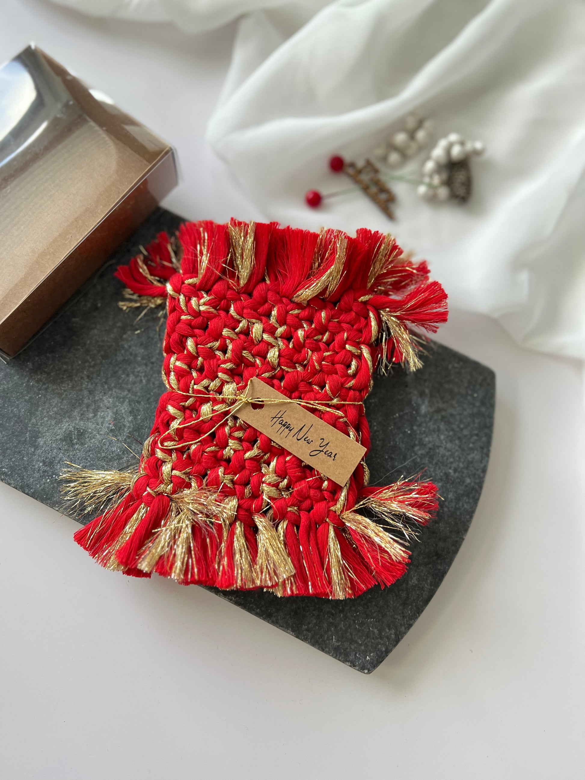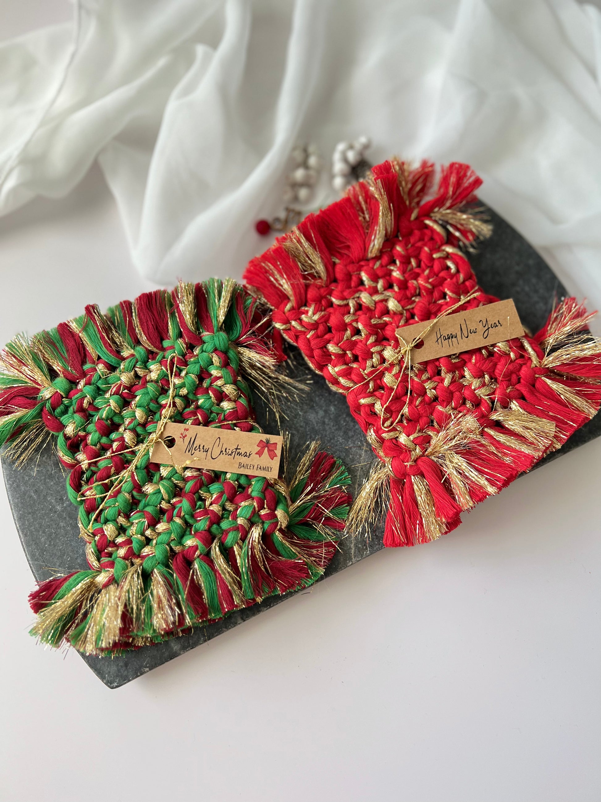 Welcome to our Boho Holiday Coasters collection, the perfect addition to your festive celebrations. Our macrame coasters make for unique and thoughtful holiday gifts for friends, stocking fillers, and bulk employee gifts.