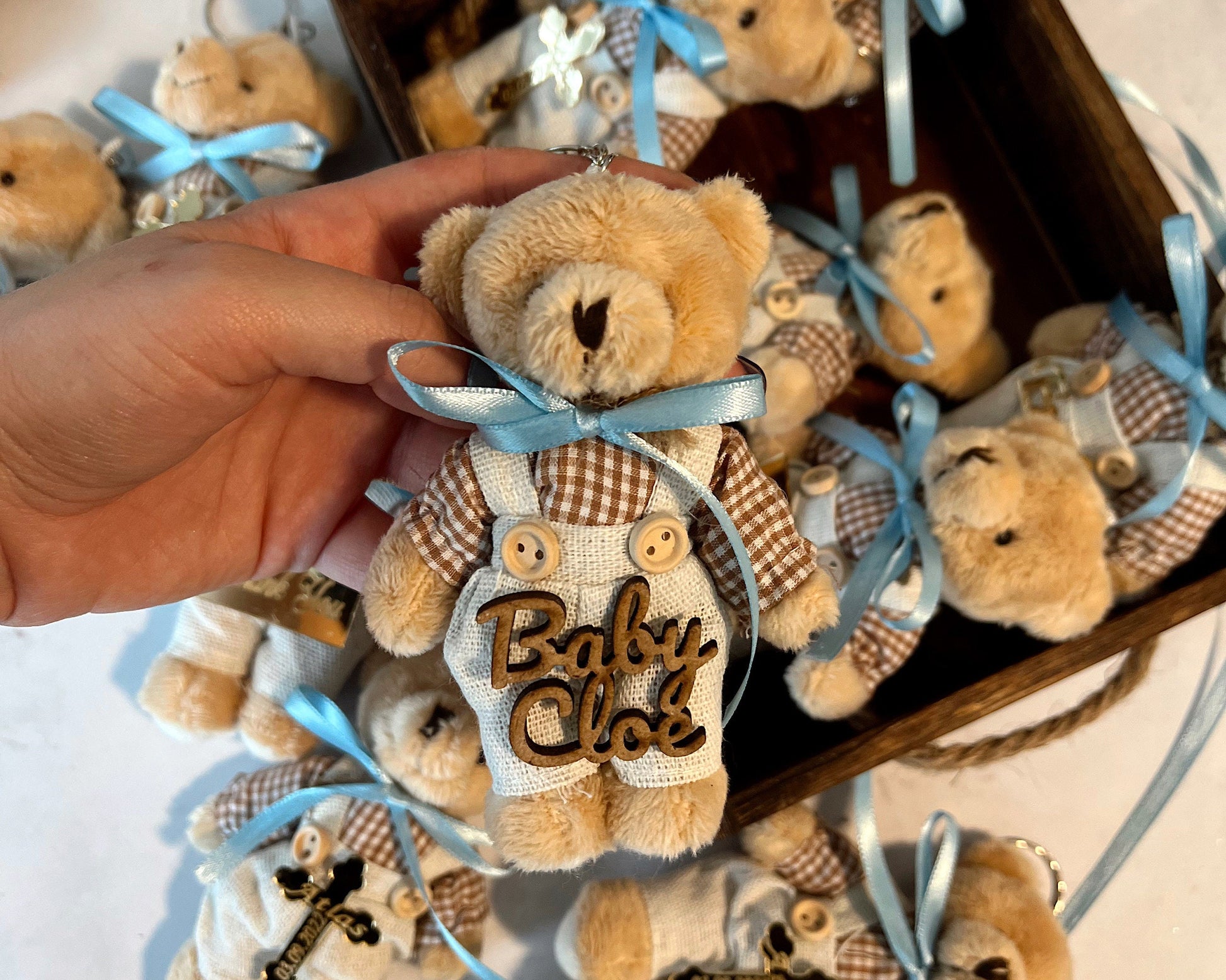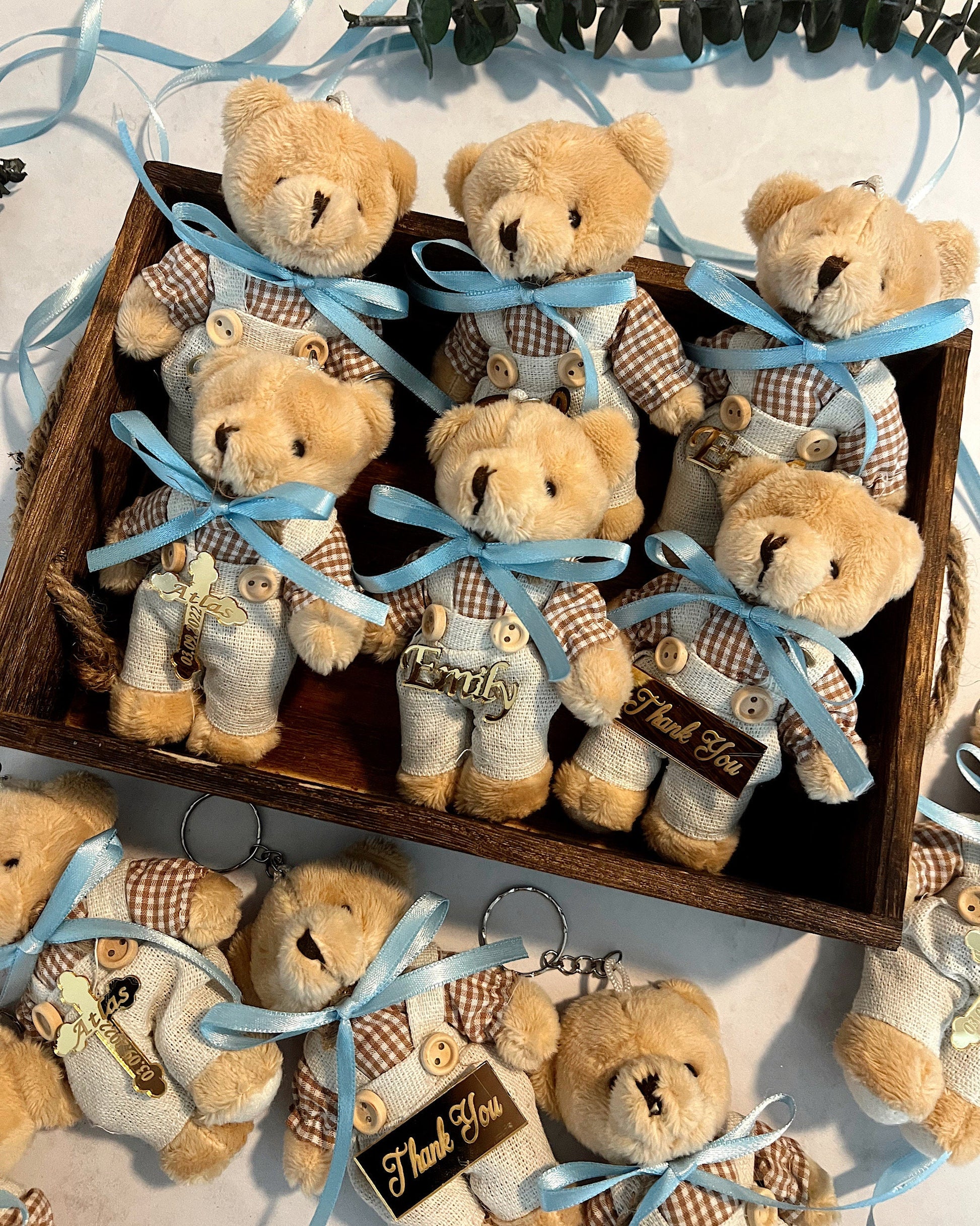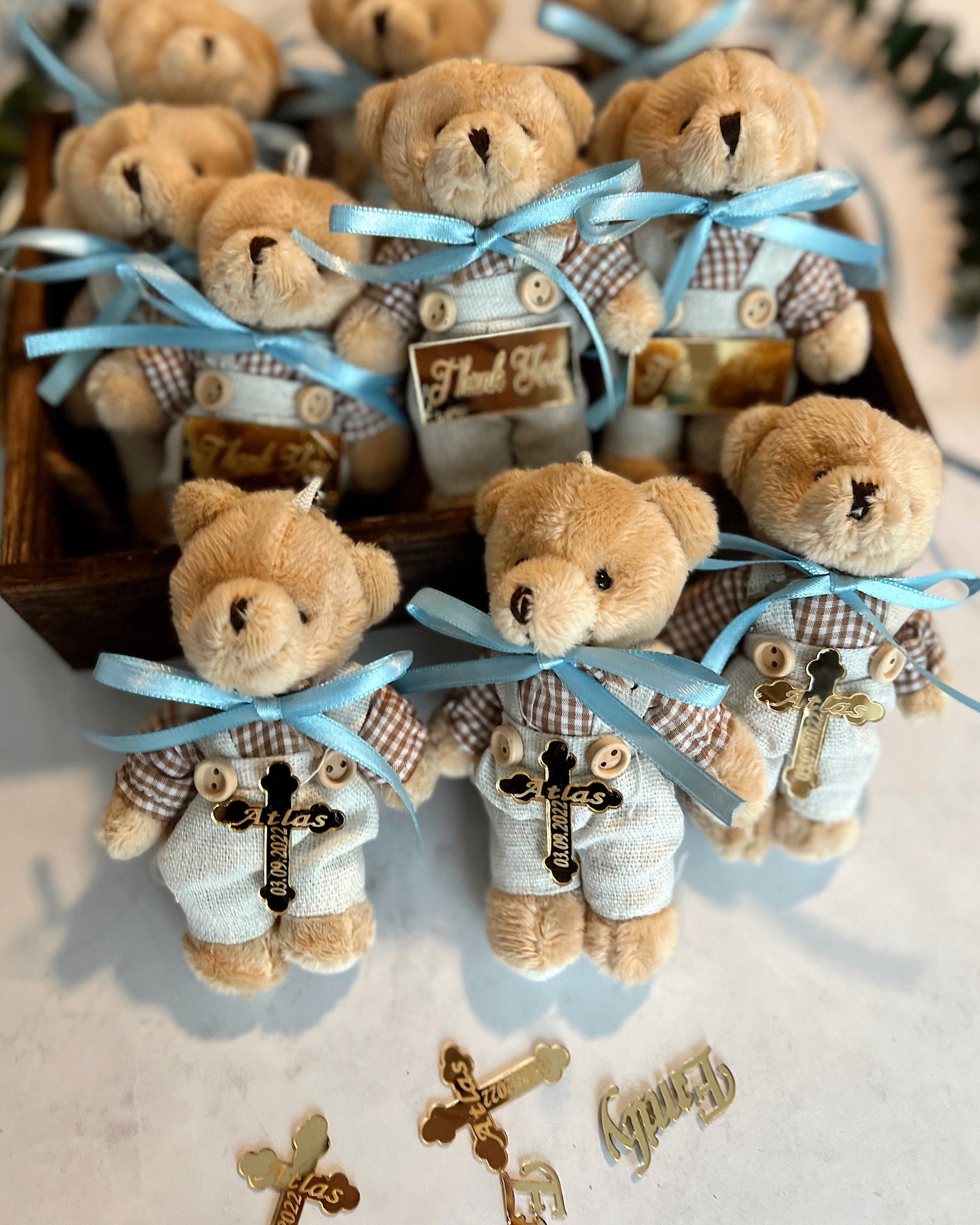 Custom Teddy Bear Baby Shower Favors, Baptism Favors for Boy, Teddy Bear Keychain, Baby Shower Decor, First Birthday Party, Baptism Party