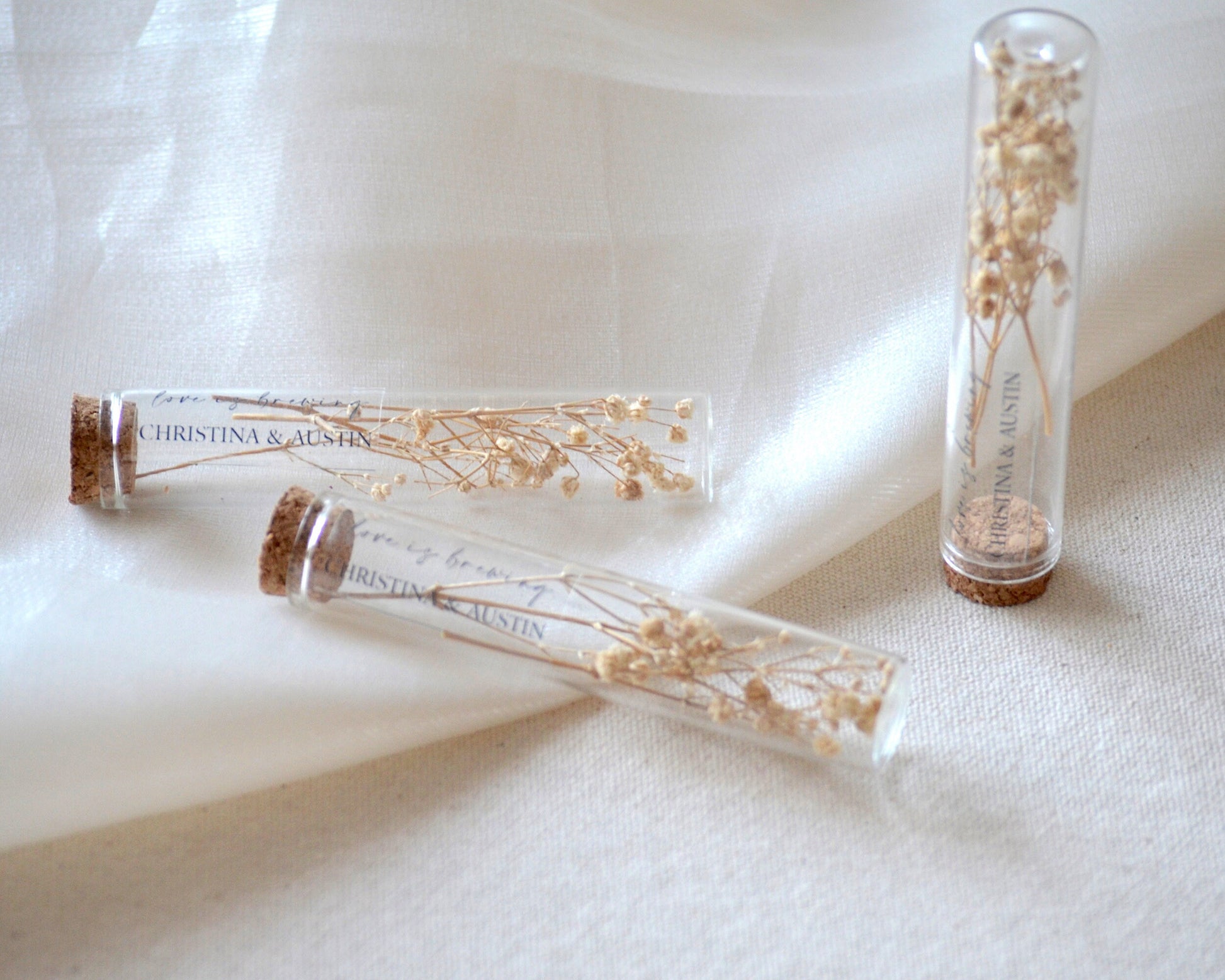 Would you like to present a personalized gift item to your guests at your wedding and other invitations? This glass test tube gift filled with dried lavender and flowers is just for you! A personalized guest gift that you can choose for beach weddings, rustic, bohemian-themed organizations and many more special events. You can use it as a custom thank you gift for wedding, engagement, wedding shower, bridal shower, bridesmaid gifts, baptism gifts, party favors.