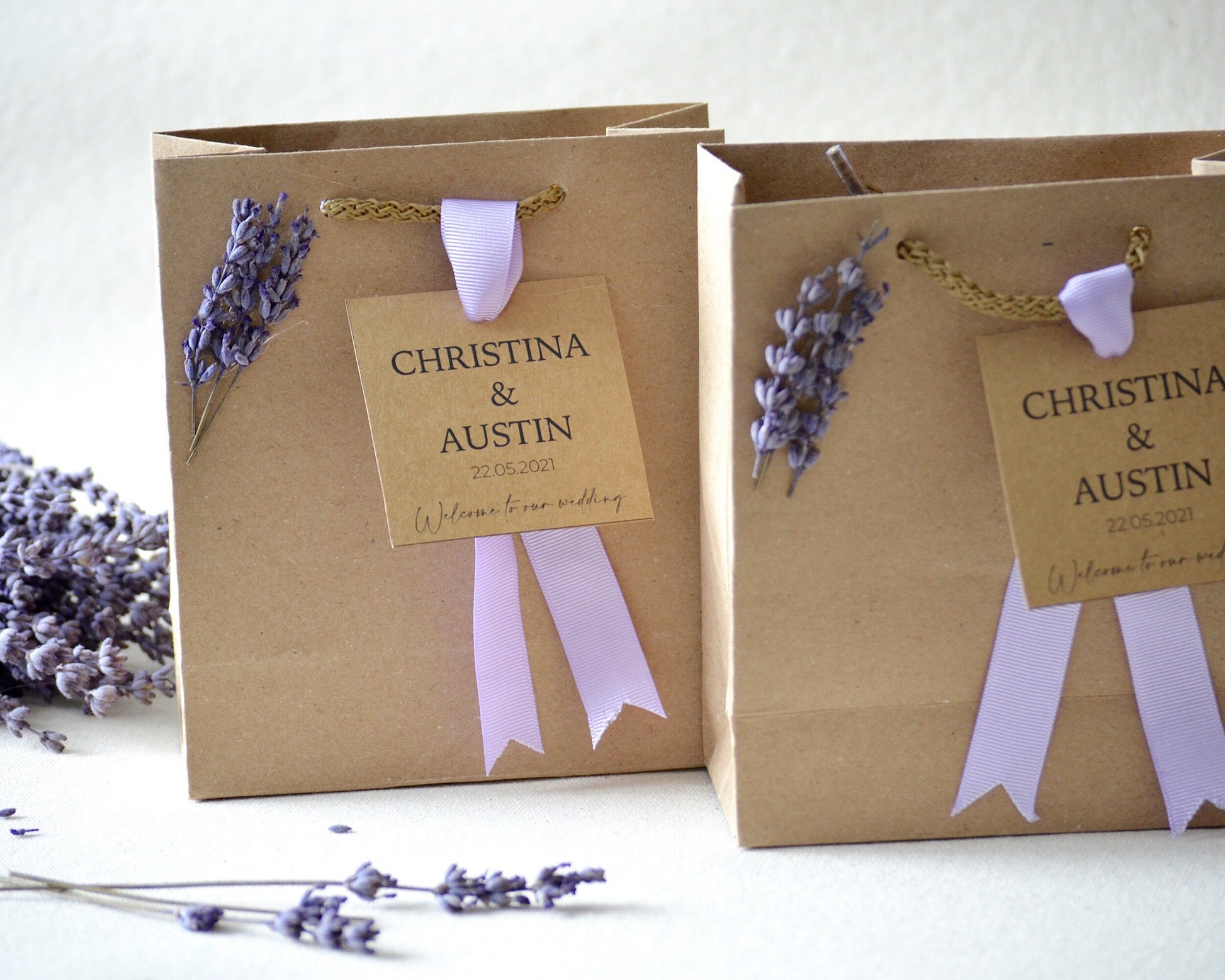 Welcome your guests with a beautiful and personalized gift bag! The Welcome Guest Bag With Lavender is perfect for many different types of events, including rustic weddings with a lavender theme, destination weddings, and birthday parties with a princess theme. This lavender bag is also a great choice for engagement celebrations, baby showers, bridal showers, and bridesmaid gifts.