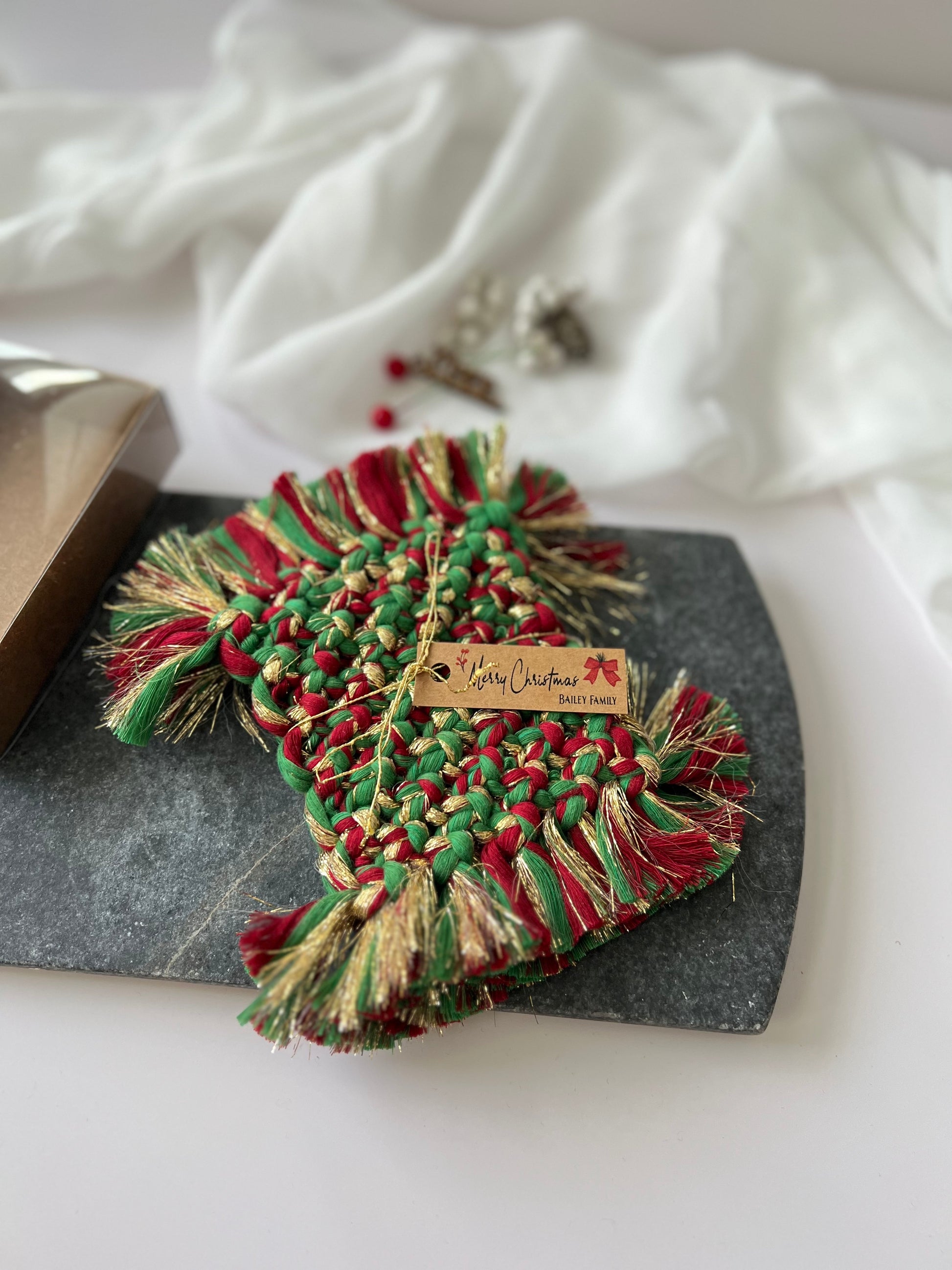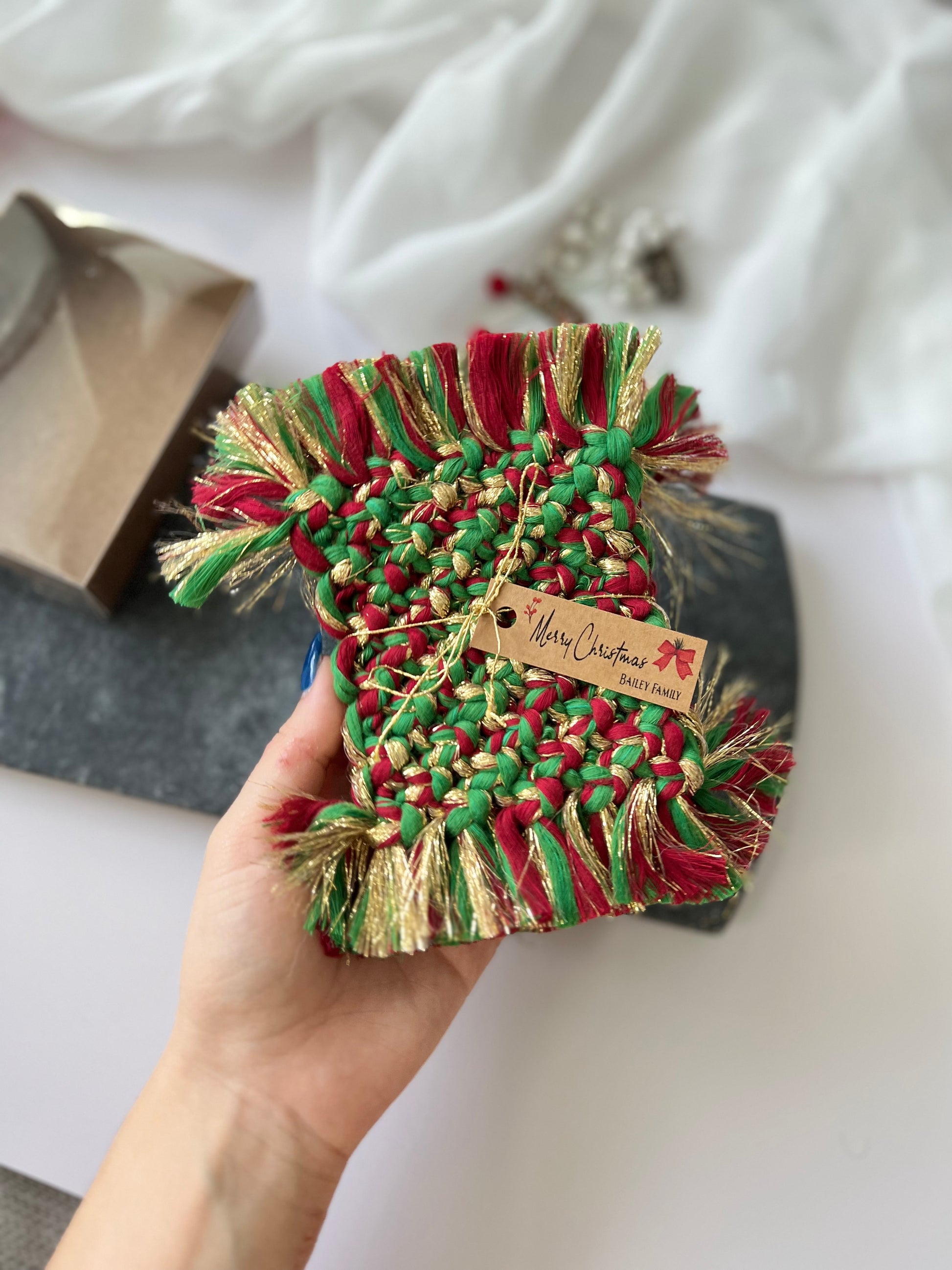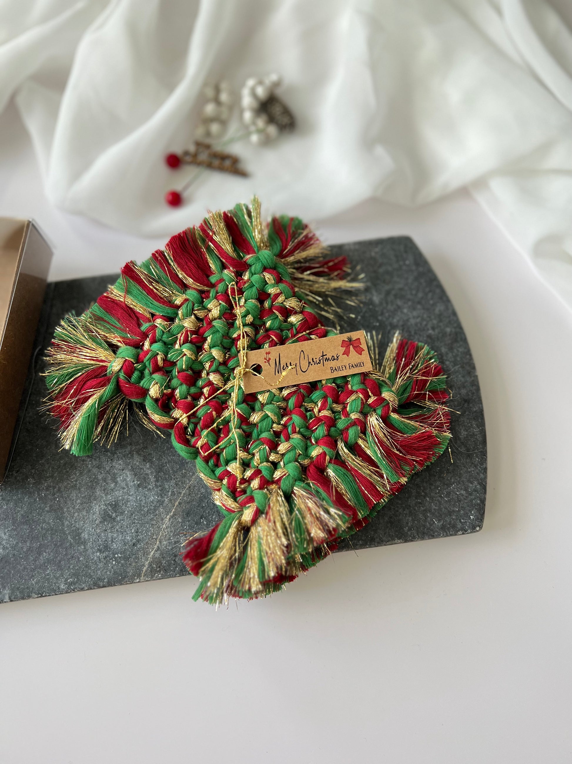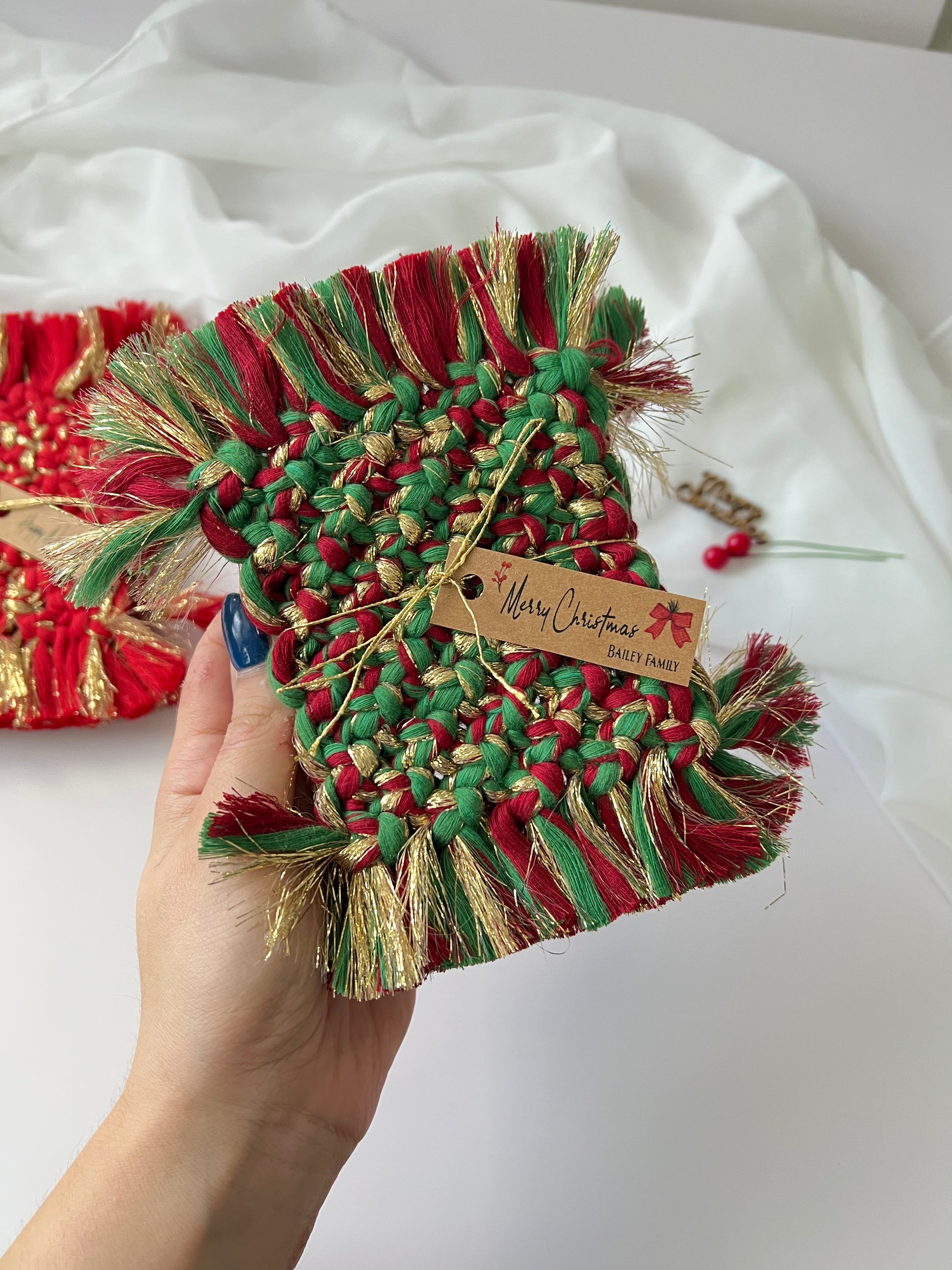 Macrame Coasters - Rustic Christmas Favors and Holiday Gifts