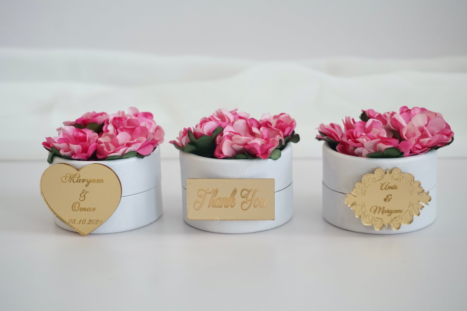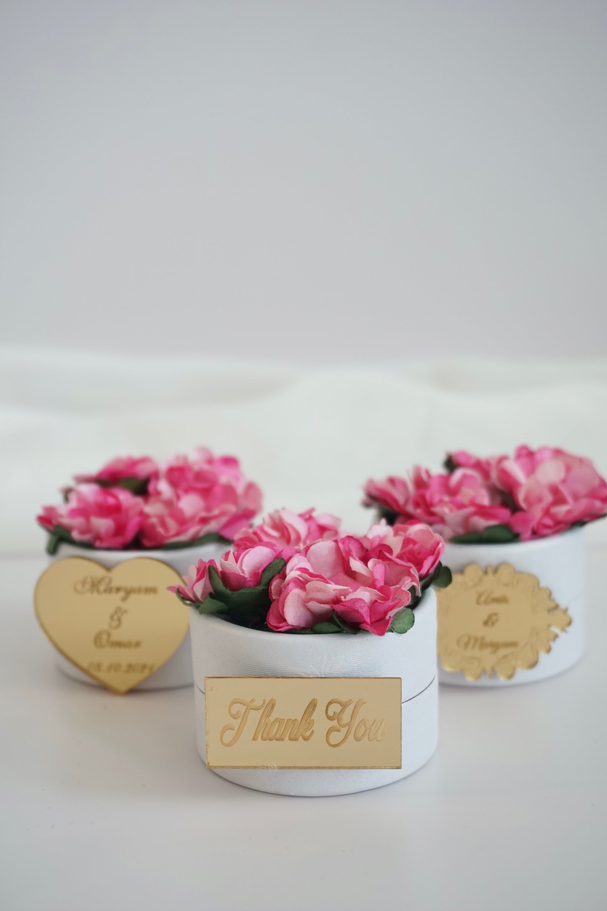 🎁 Ideal Gift for All Occasions: Whether you're celebrating a wedding, bridal shower, or welcoming a new baby girl, these candy boxes make for an ideal gift. The personalized plexiglass label adds a special touch, making your guests feel cherished.