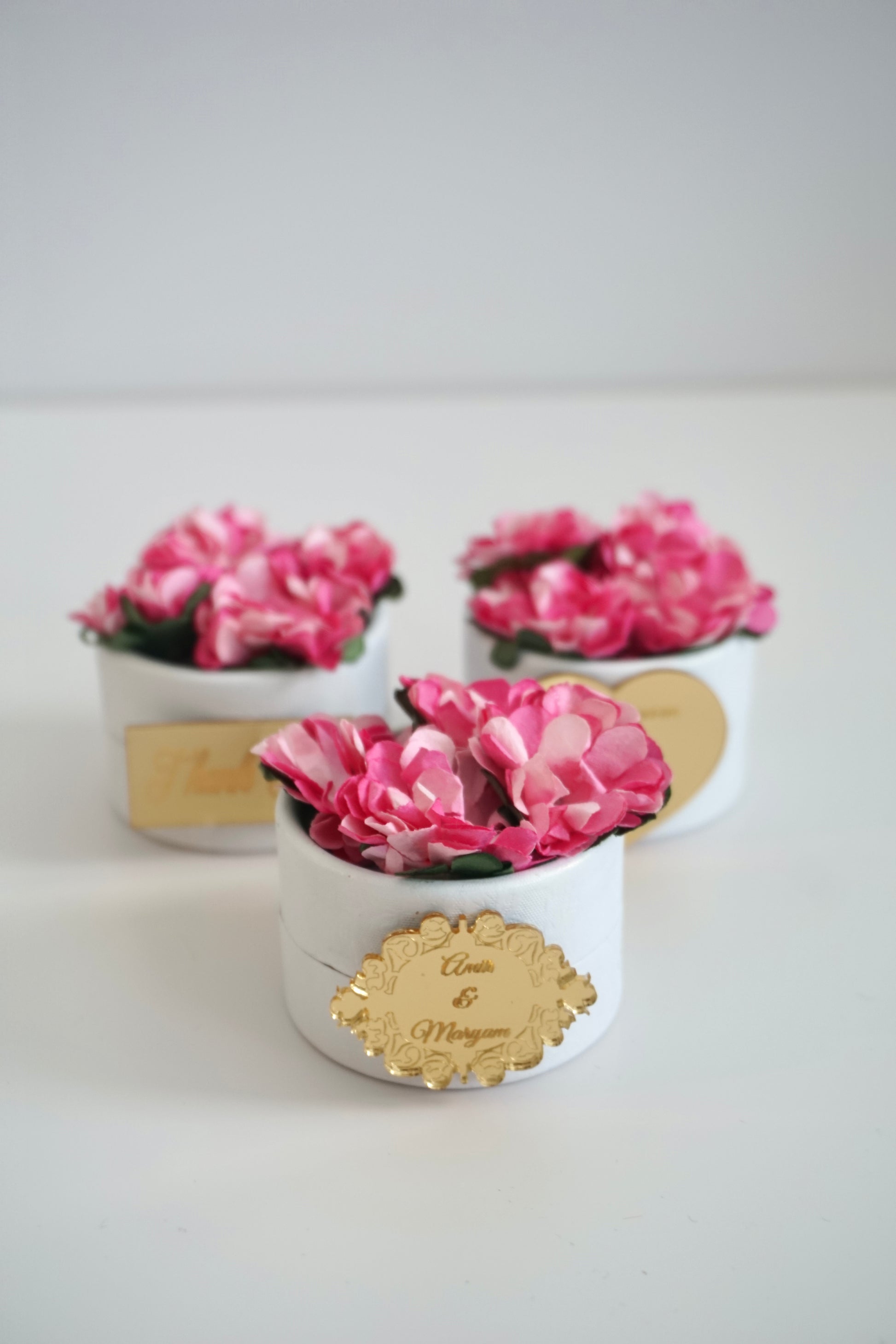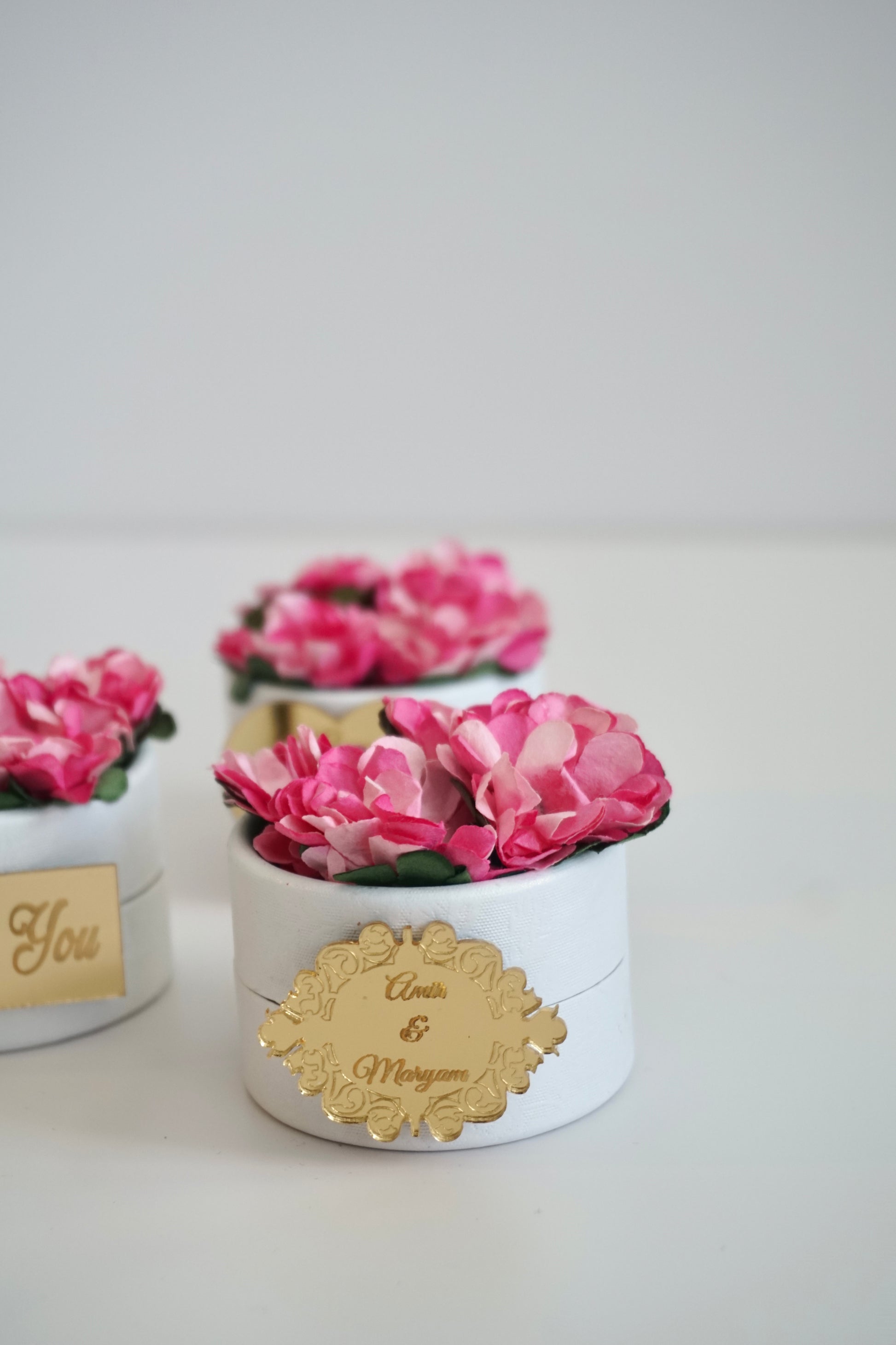 Elevate your special occasions with our exquisite Personalized Candy Boxes adorned with delicate pink flowers. These versatile boxes are the perfect addition to weddings, bridal showers, and baby showers, adding a touch of elegance and sweetness to your celebrations.