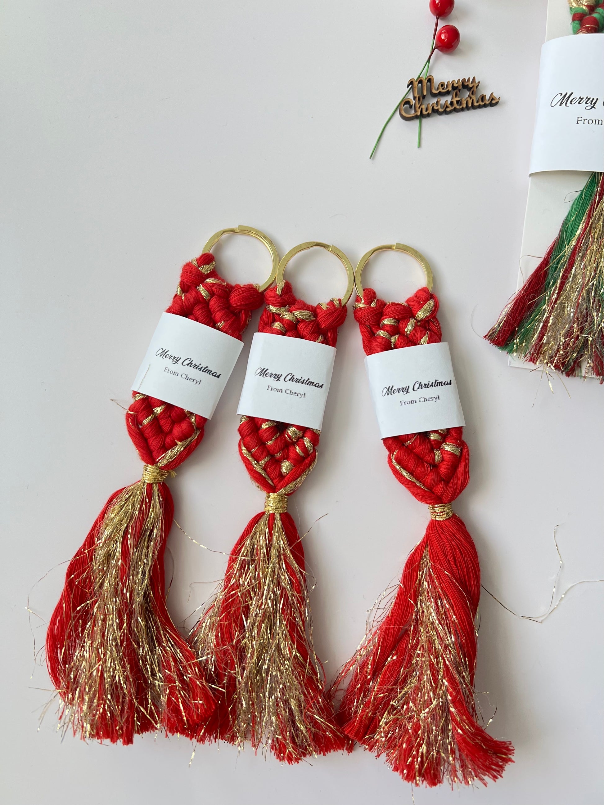 Welcome to our collection of Christmas Keychain Gifts for Guests! 🎄 These charming red and green macrame keychains are the perfect personalized Christmas favors and holiday client gifts, making them an ideal choice for spreading warmth and gratitude during the festive season.