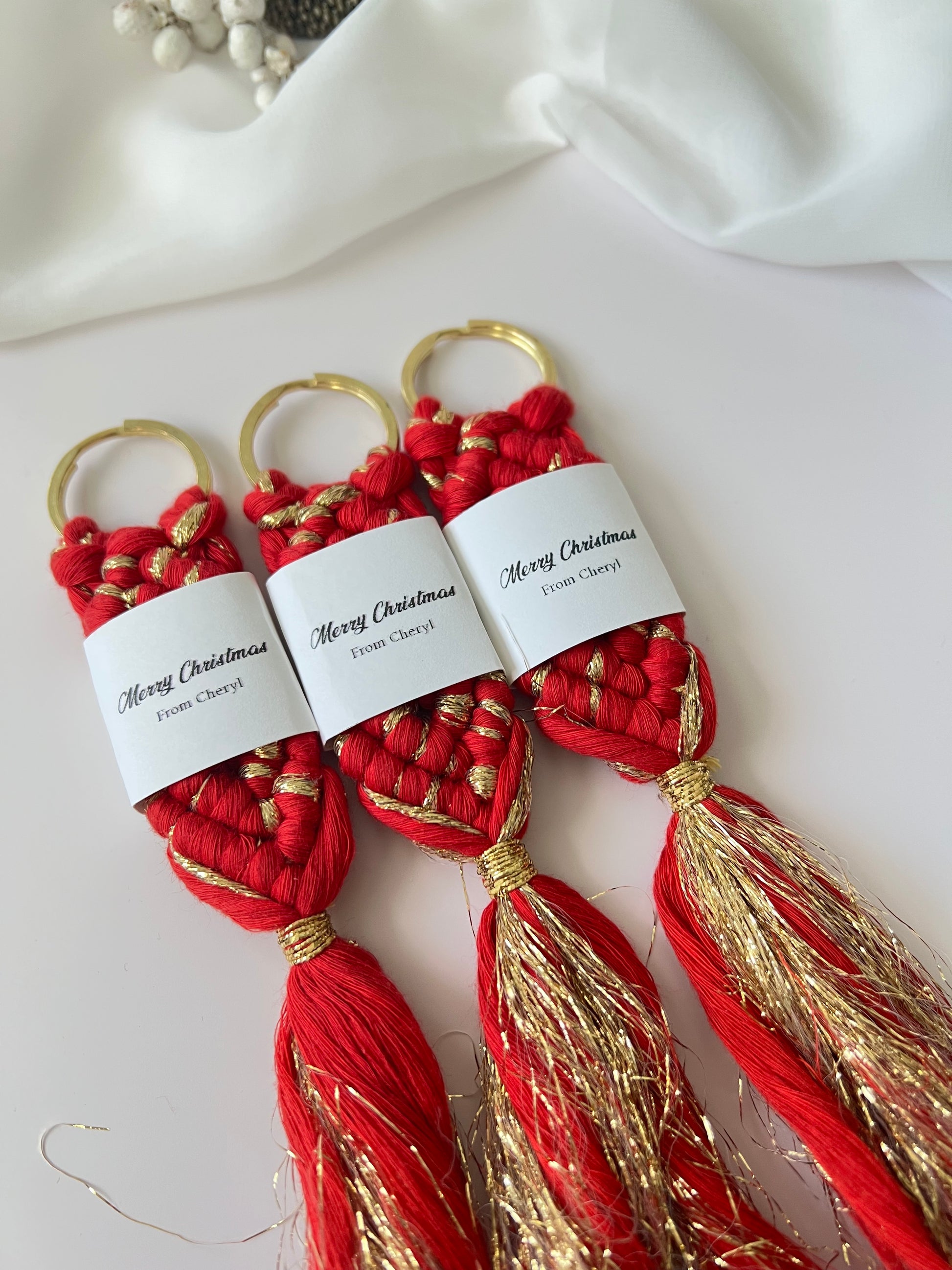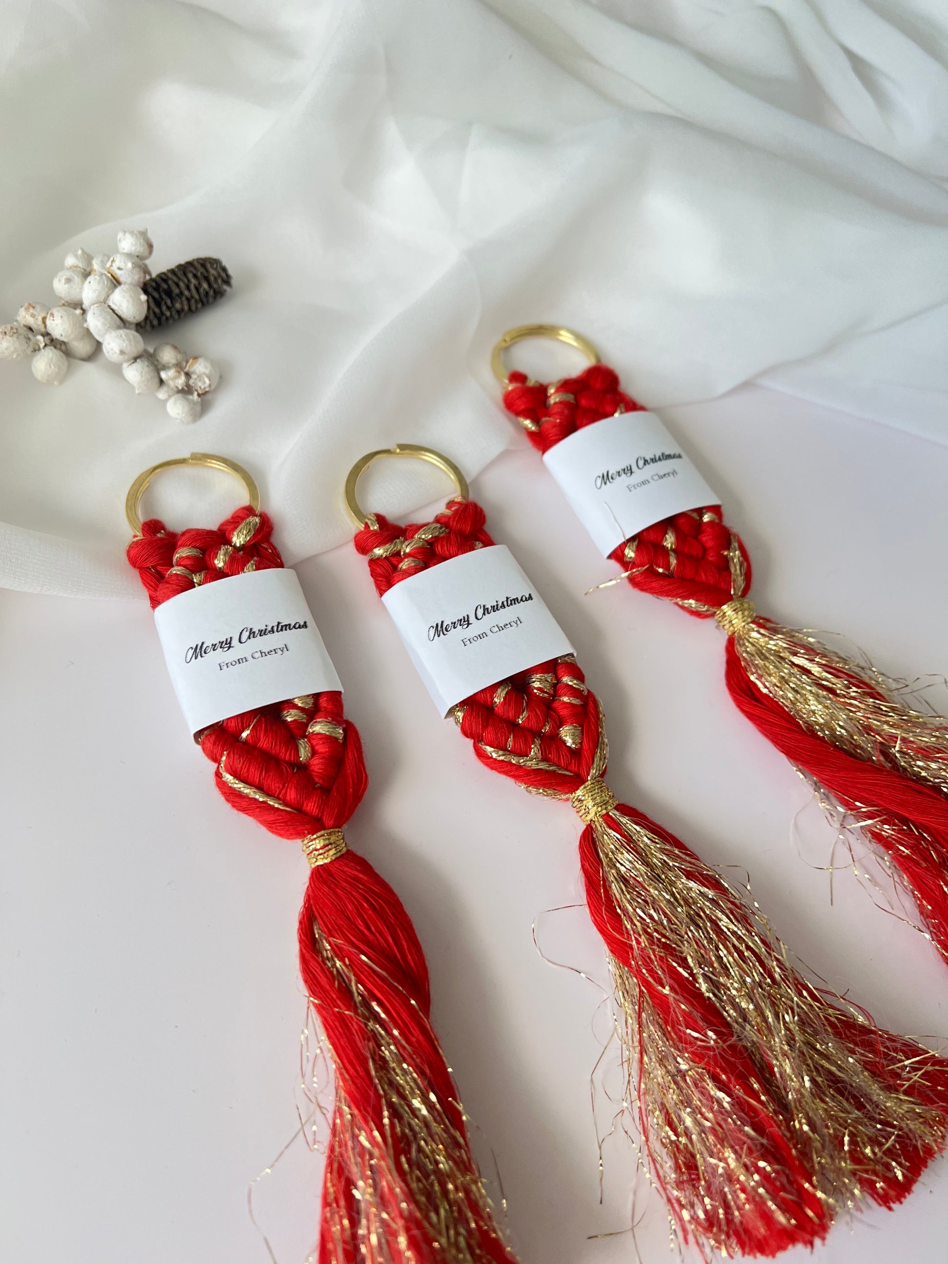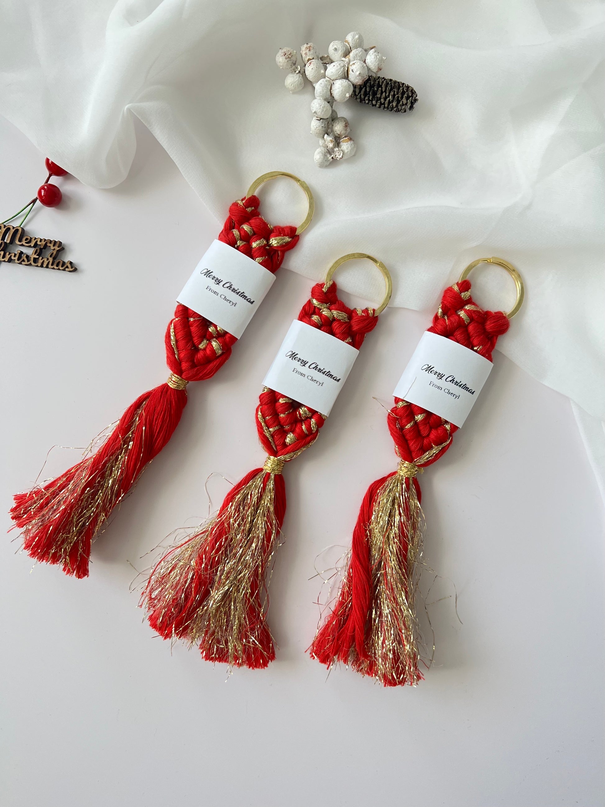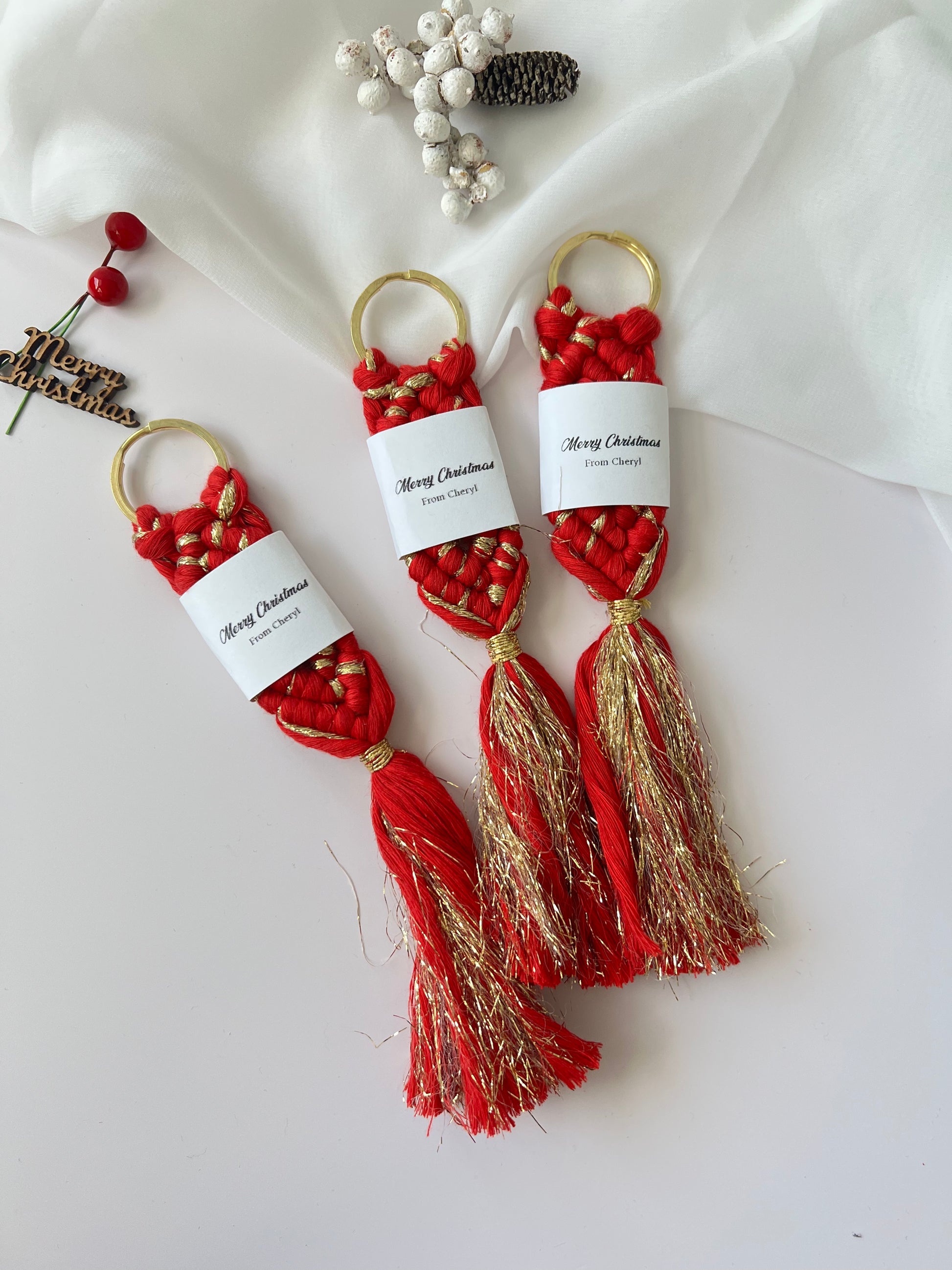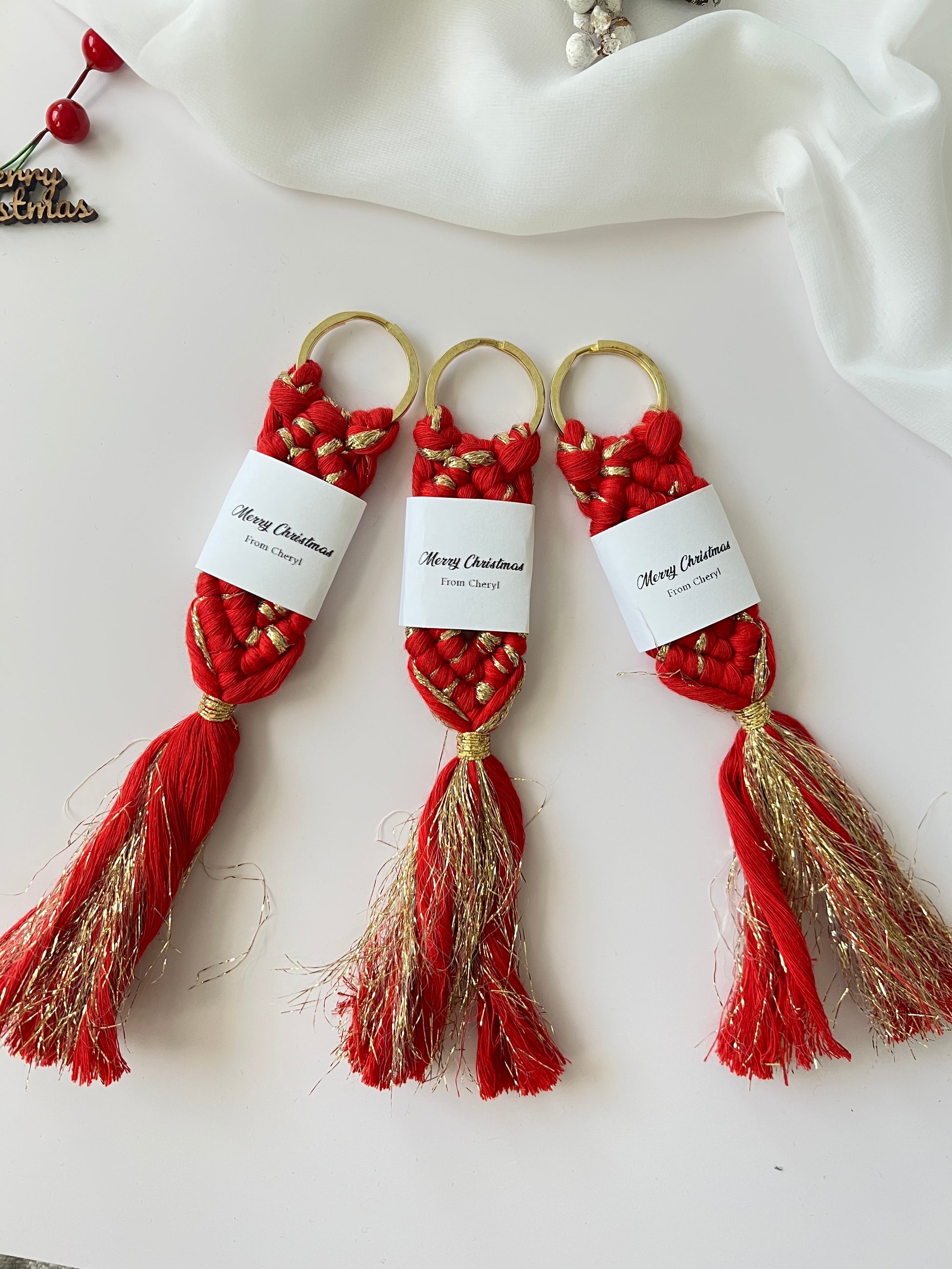Personalized Christmas Red Macrame Keychain | Custom New Year Gifts