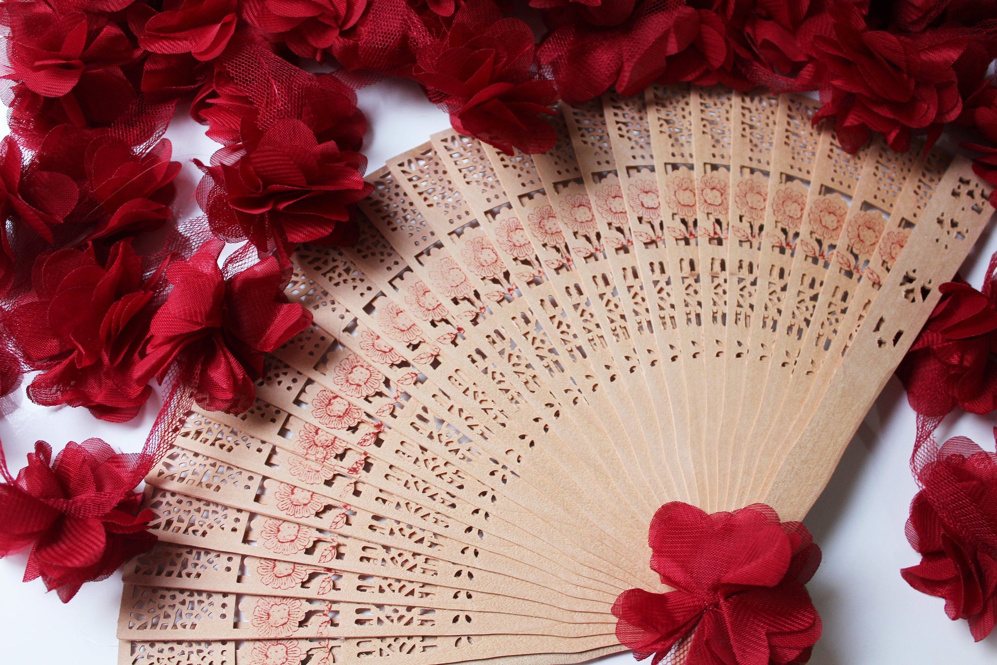 Wooden hand fans can be preferred for rustic concept weddings, beach organizations, bridesmaid gifts, or promotional gifts.
