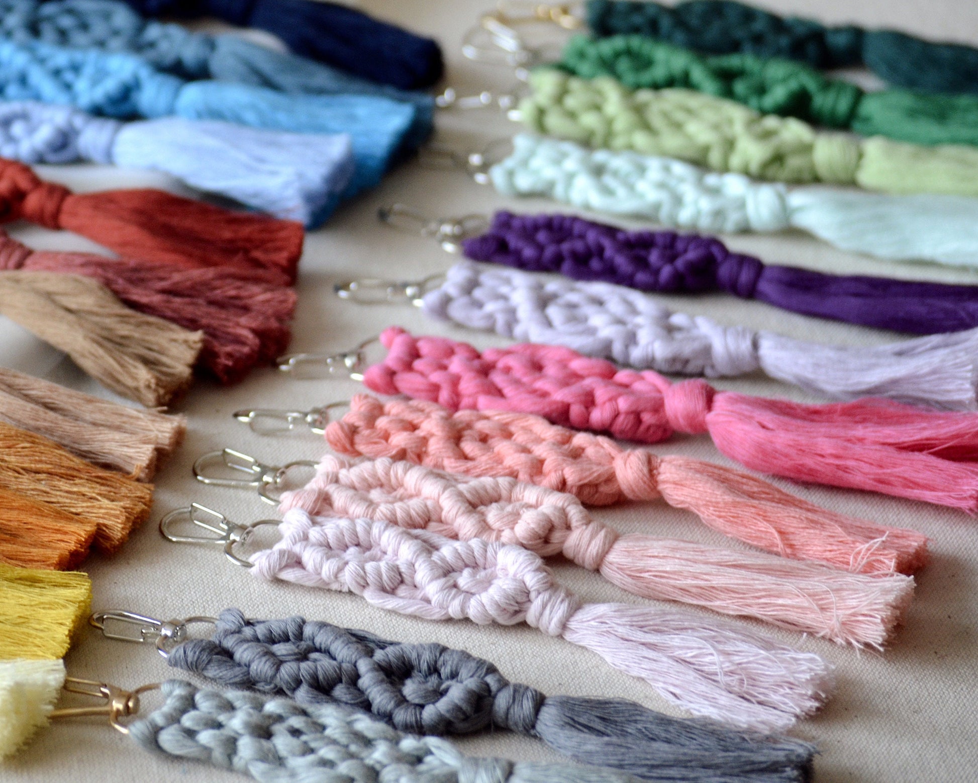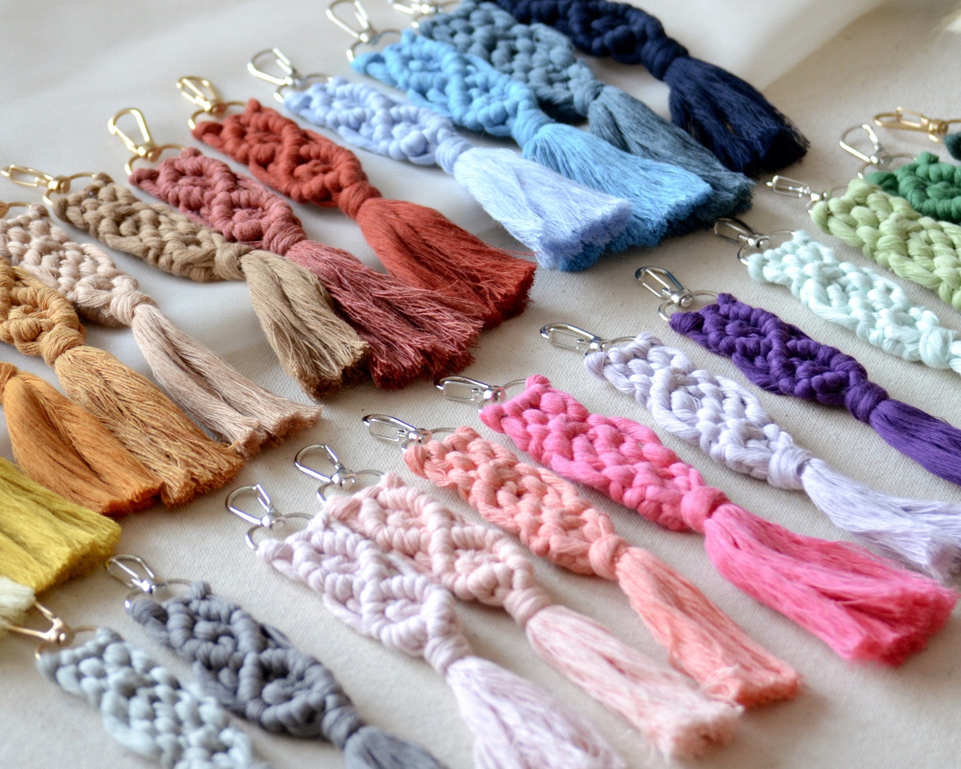 Personalized macrame keychains are a great option for guest's birthdays, bohemian wedding gifts, baby showers, boho bridal showers.