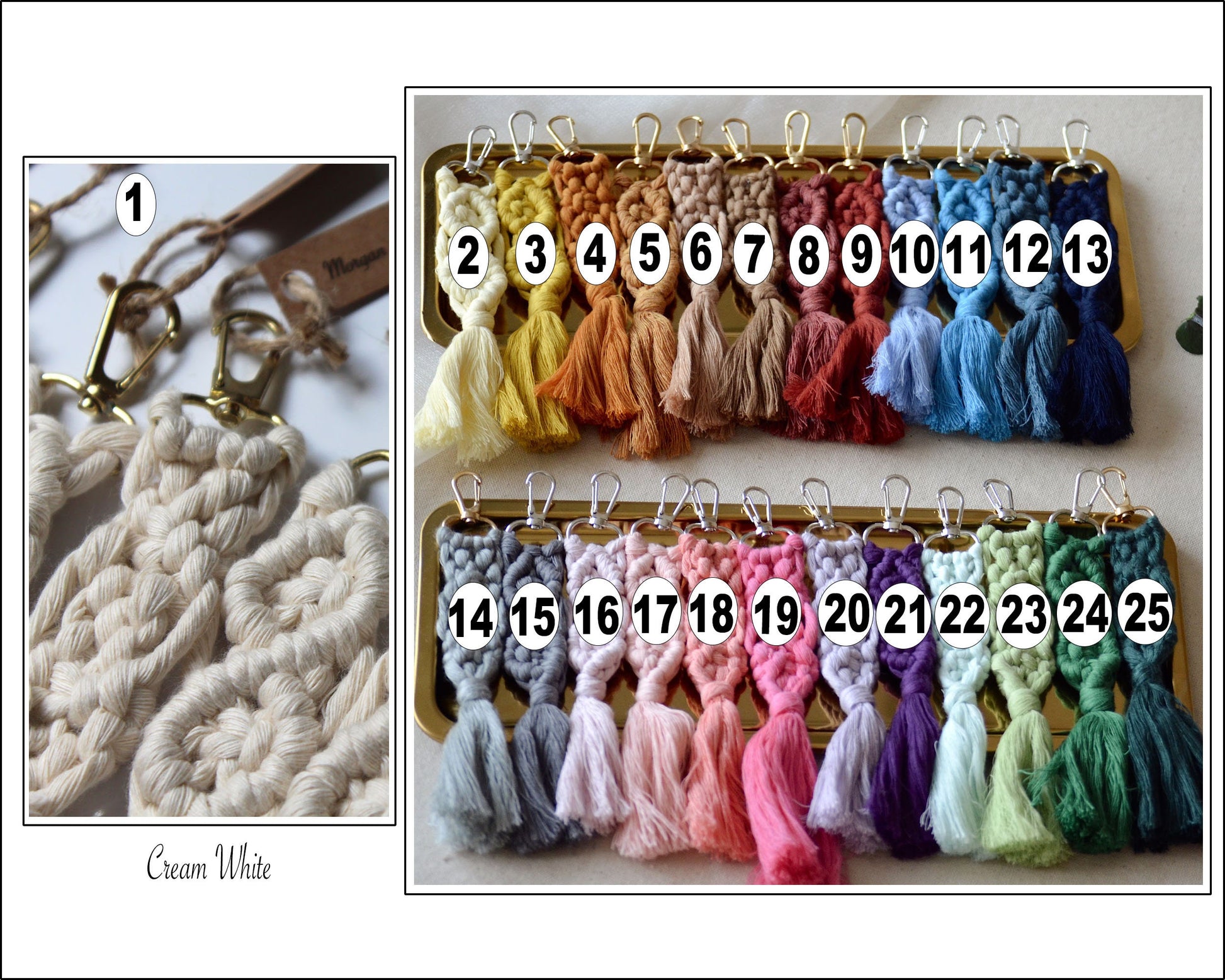 **Brown thread and tag will be used as in the last photo for the customization tag on macrame keychains.