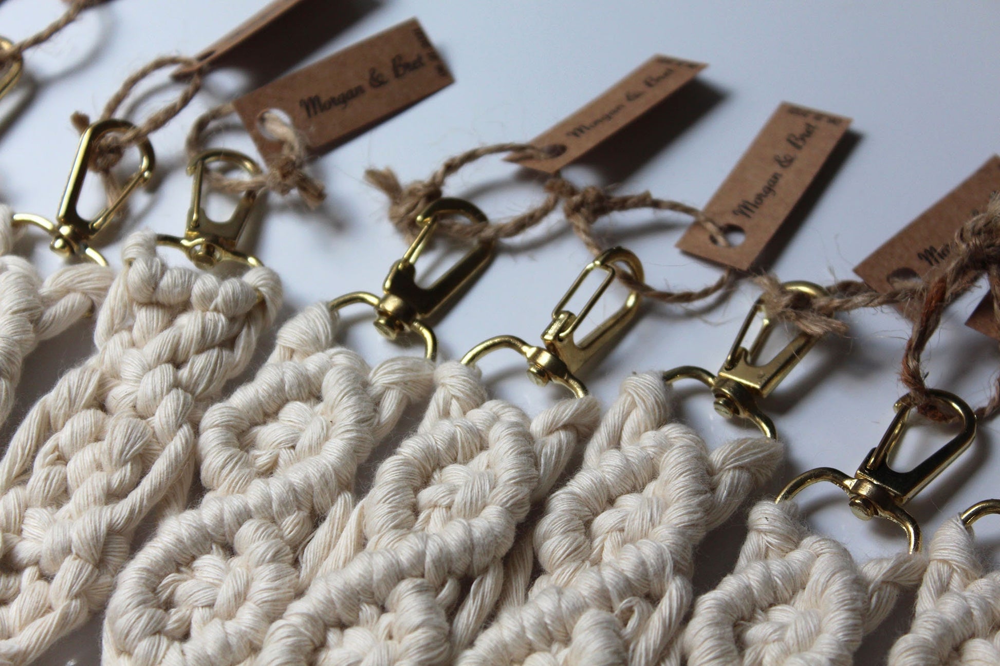 Personalized Macrame Keychains Wedding Favors, Boho Wedding Party Favors, Bridal Shower Party Bulk Gifts, Macrame Engagement Gift