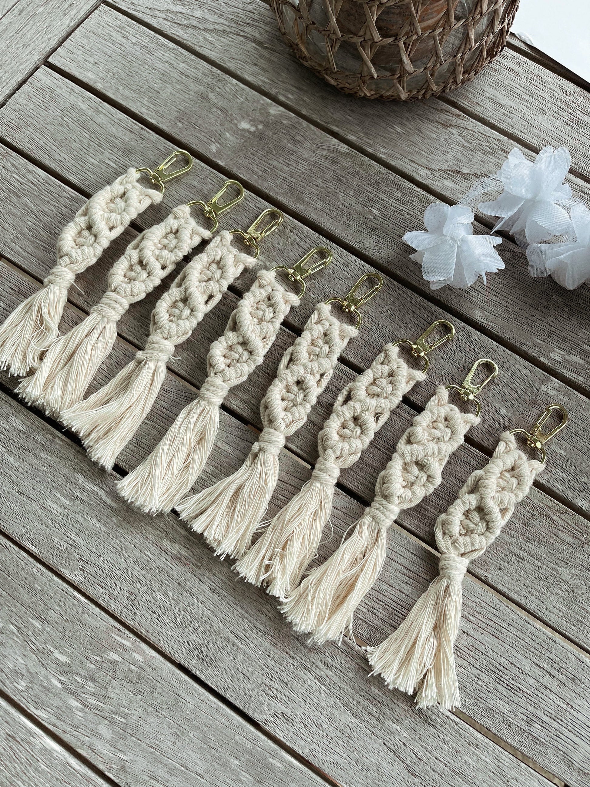 Macrame keychains are a great option for birthday, bohemian wedding gifts, baby showers, bridal showers.