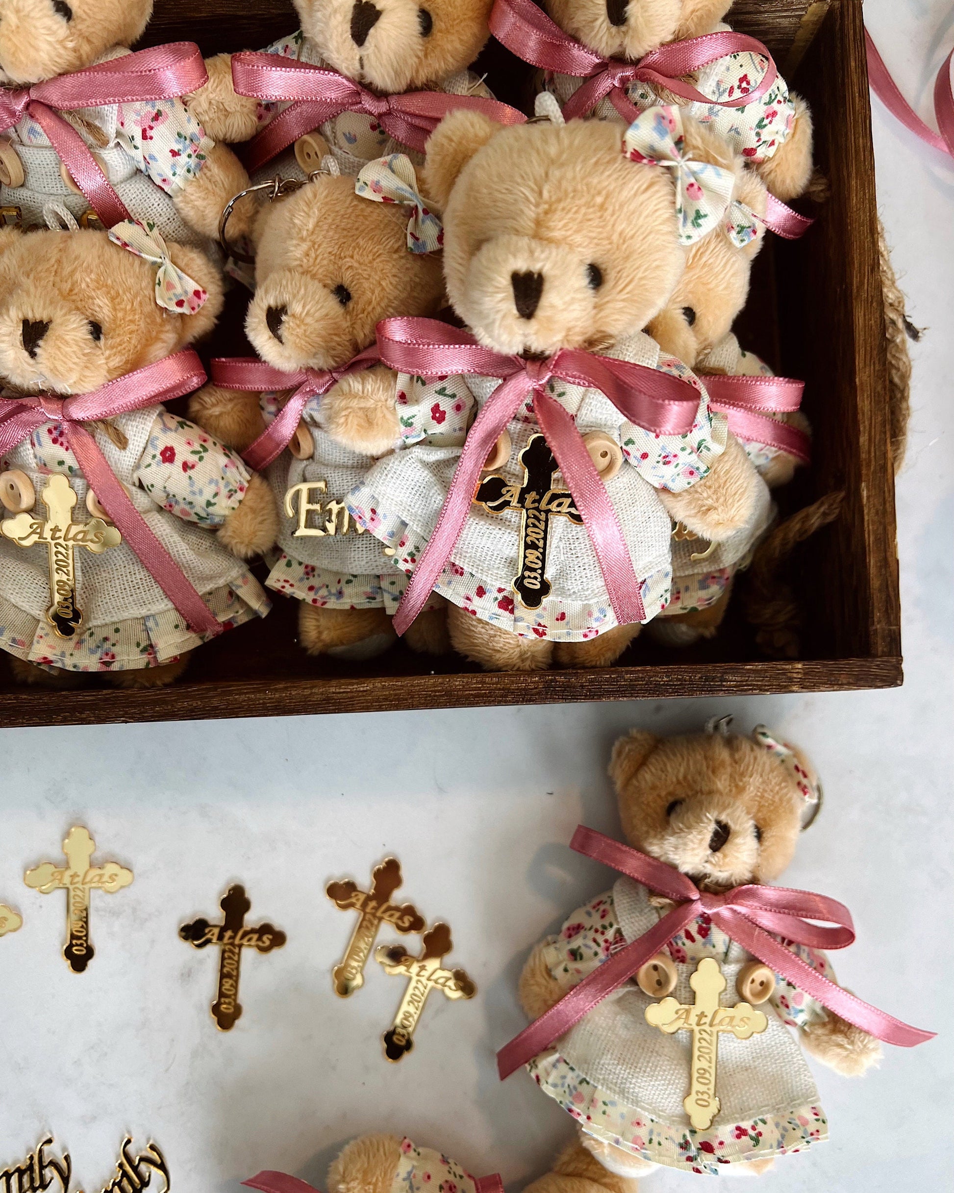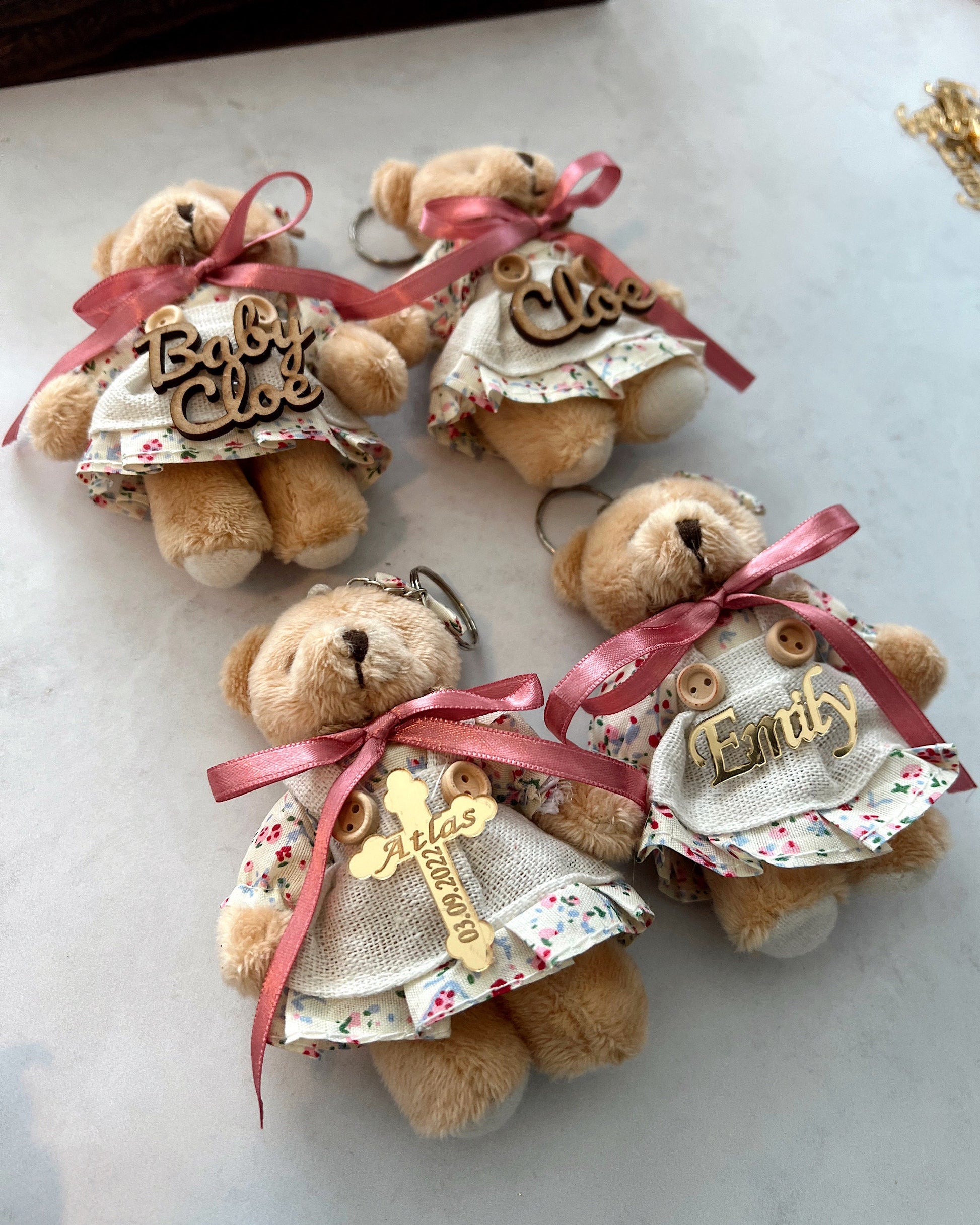 Teddy Bear Baby Shower Favors, Teddy Bear Keychain, Personalized Favors, First Birthday Party, Baptism Favors, Christening Gift